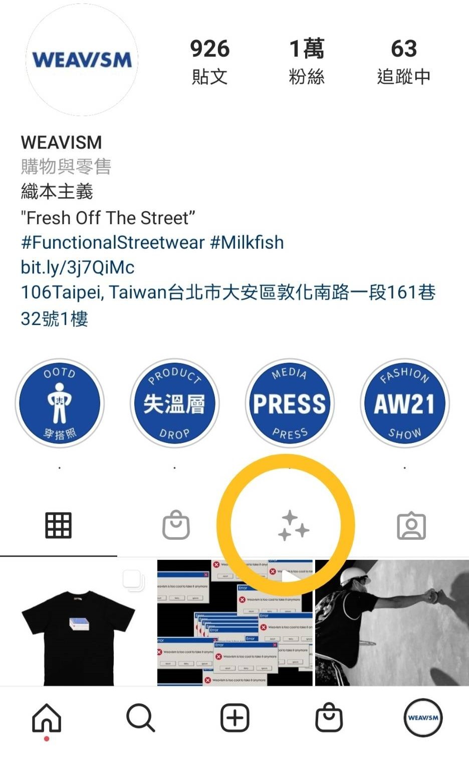用行動裝置上去WEAVISM Instagram,點擊星星符號即可套用「虱目魚人」濾鏡。
