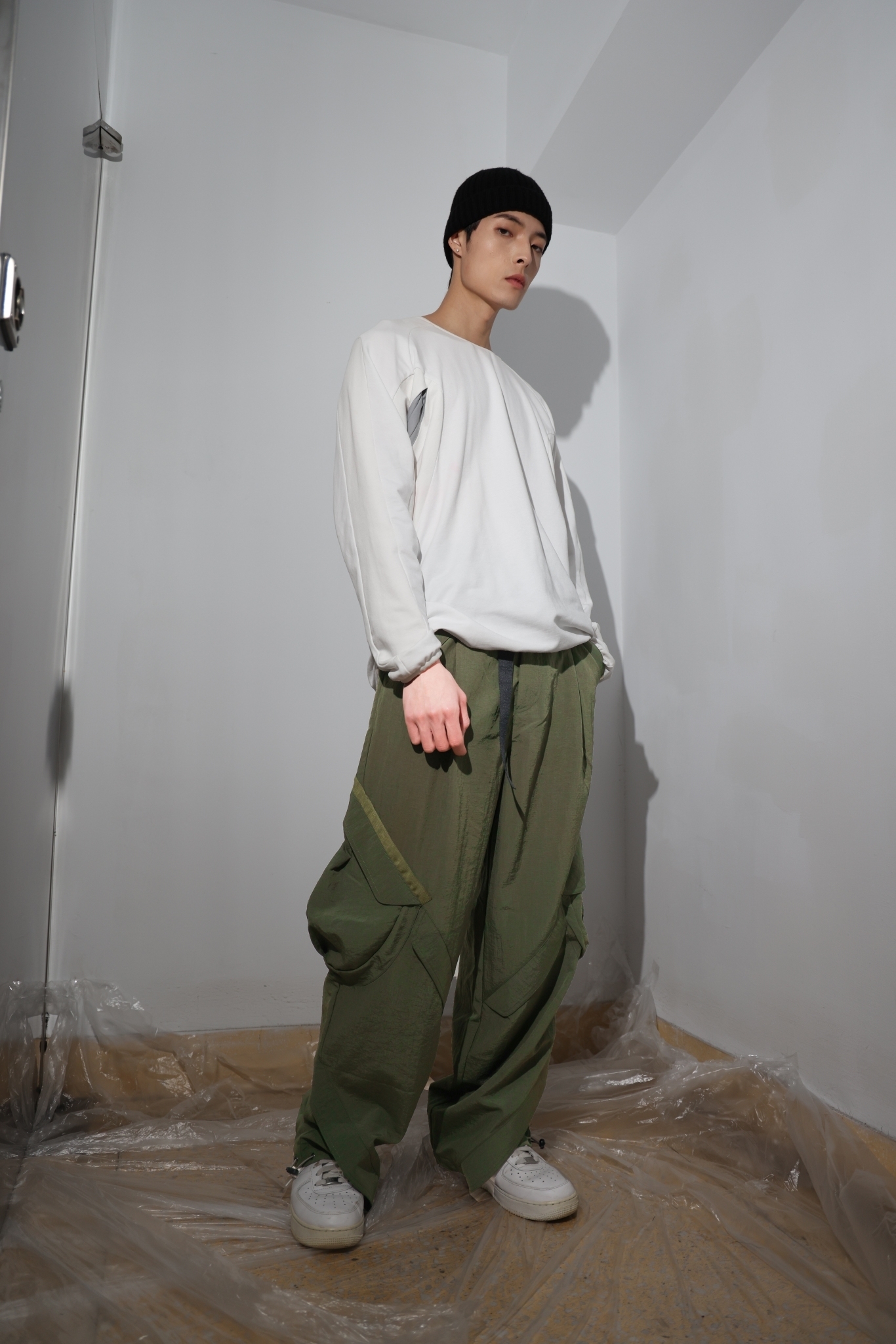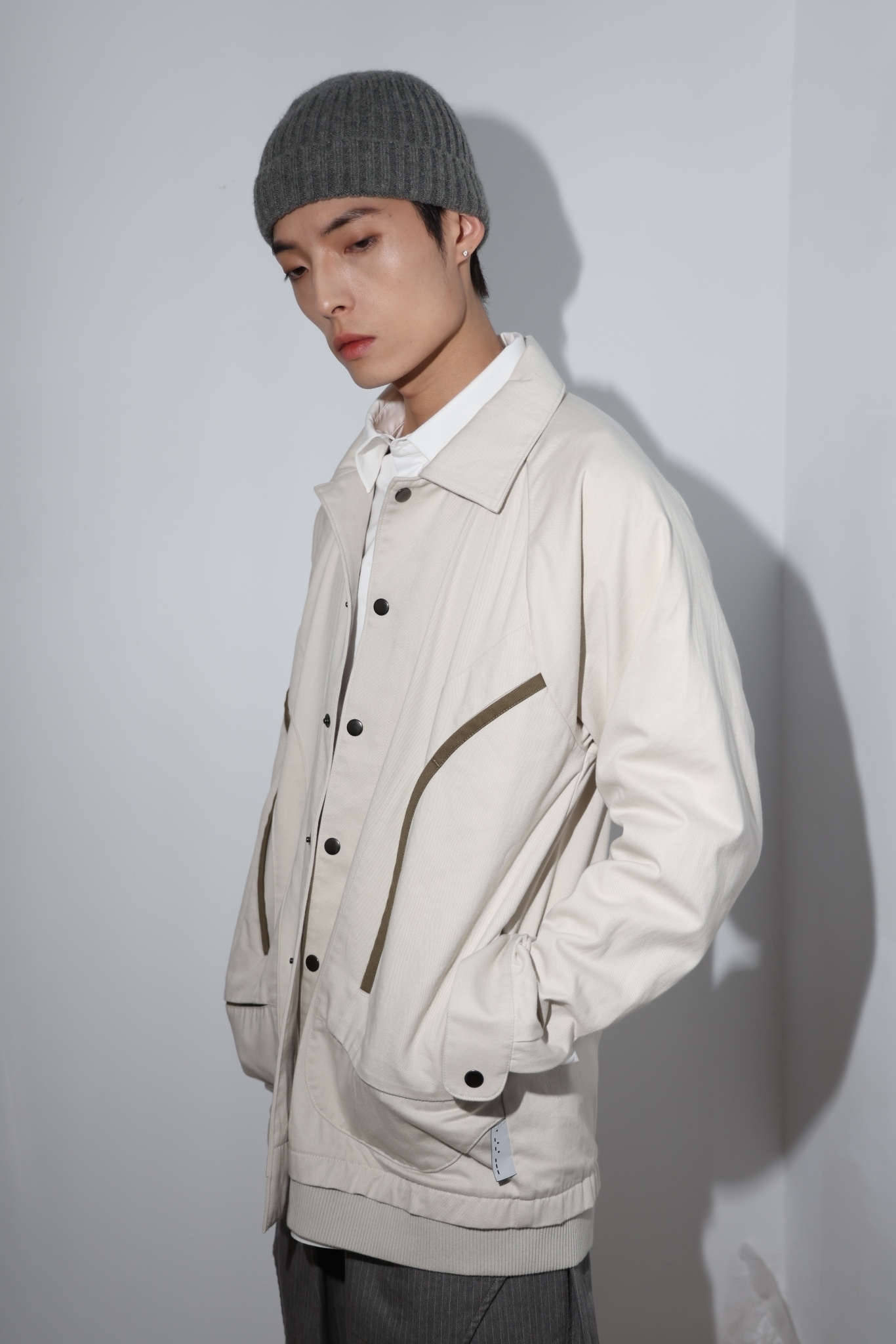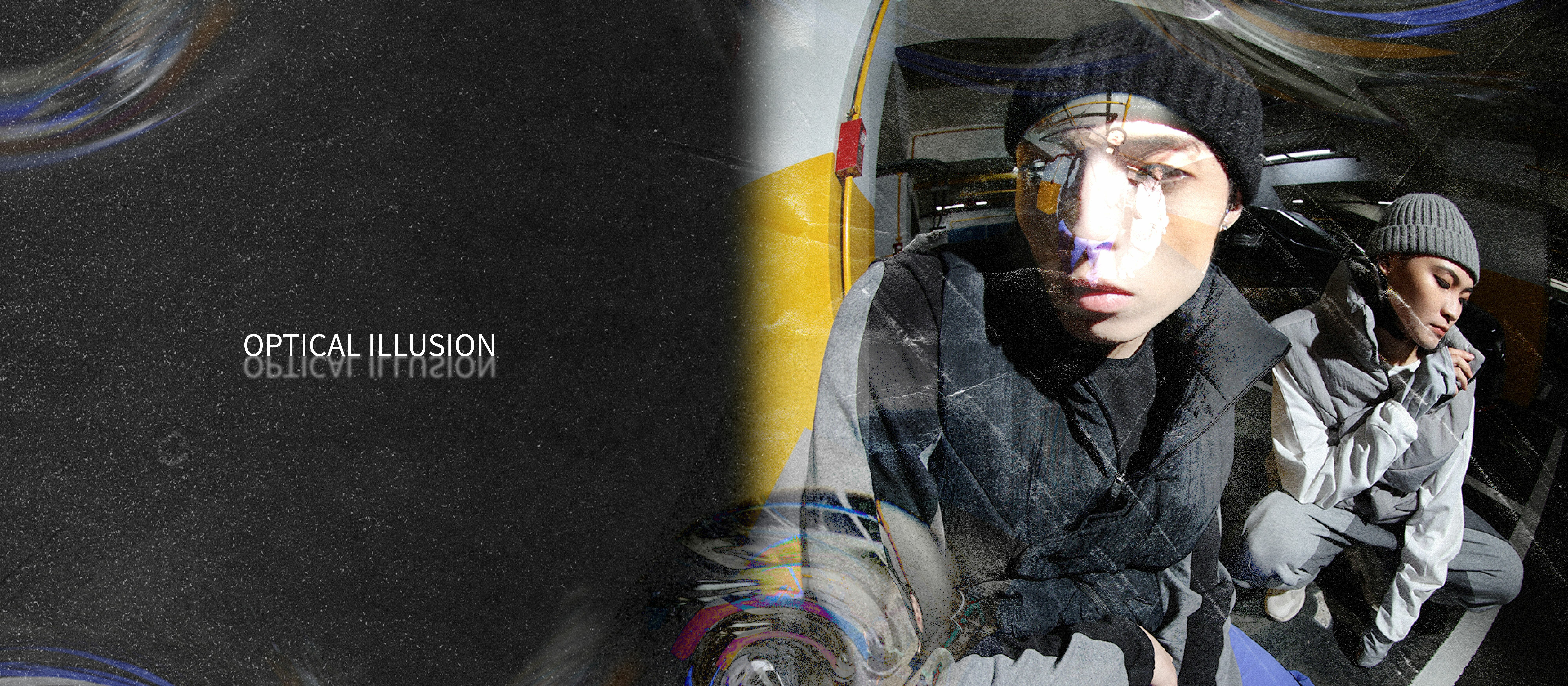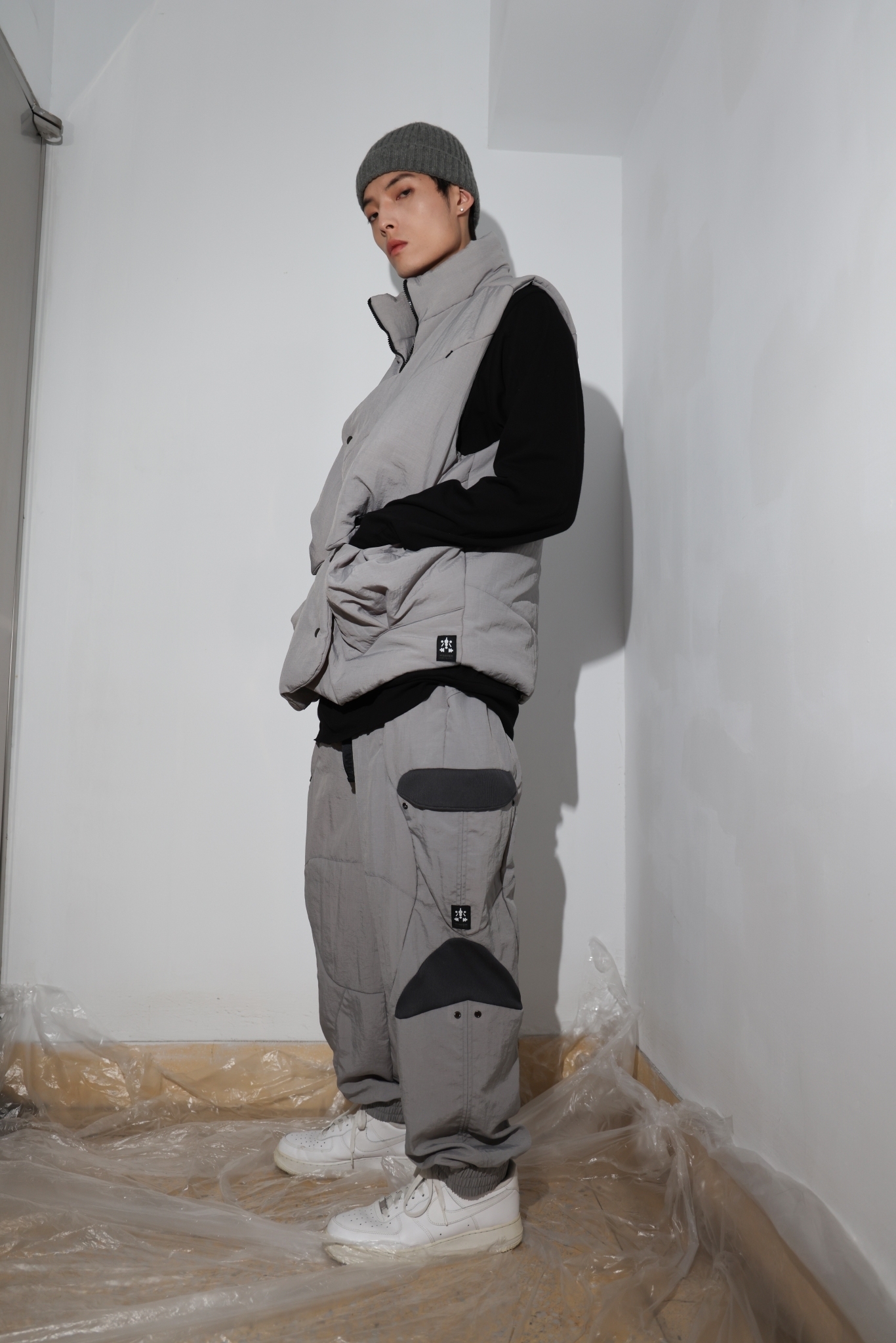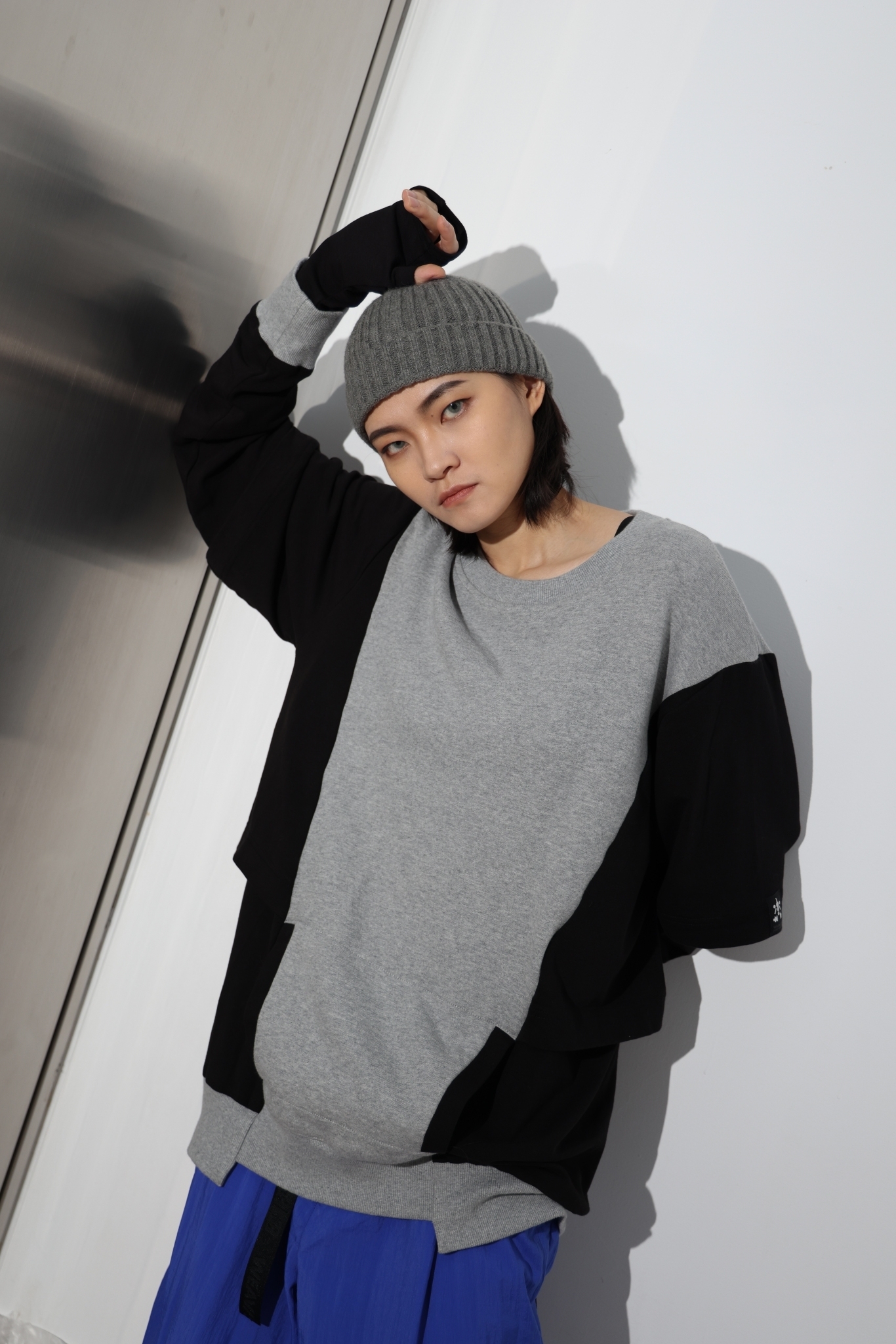 進一步探討虛擬世界與現實世界之間的羈絆。人類現在每日花費大量時間在網絡甚至元宇宙的虛擬世界內,在虛實世界中不斷頻繁切換;而灰色作為黑白兩者之間的中值色,不同明度的灰調也呼應了虛實間越來越渾濁的邊界。誇張寬鬆版型也是這次的視覺重點,設計師一改過往的利落剪裁,將原本的輪廓刻意放大,表達虛幻世界由靈魂主導的自由無拘,同時也藉由現實與虛擬擦撞出的扭曲感,延伸出新穎的弧度線條。