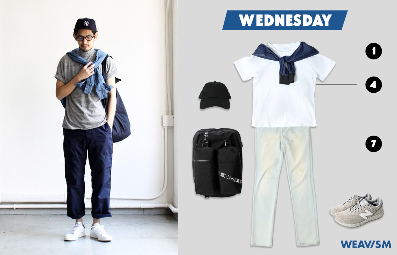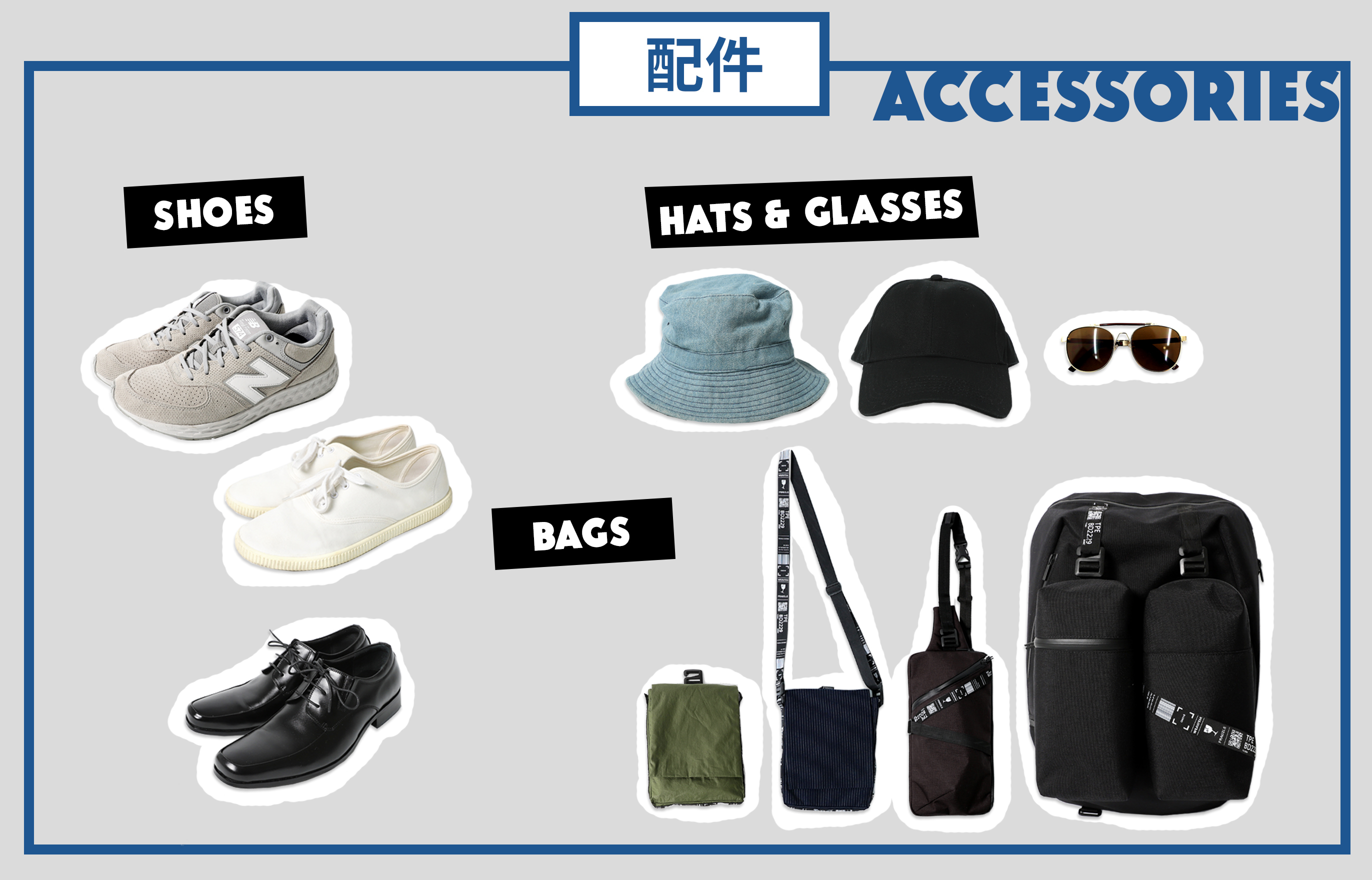 相同的幾件衣服,利用帽子、包包、眼鏡等周邊配件就能玩出不同興味,一點都不無聊!