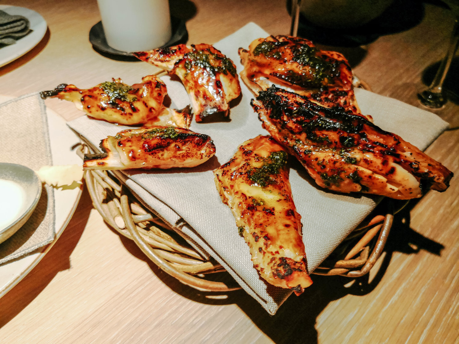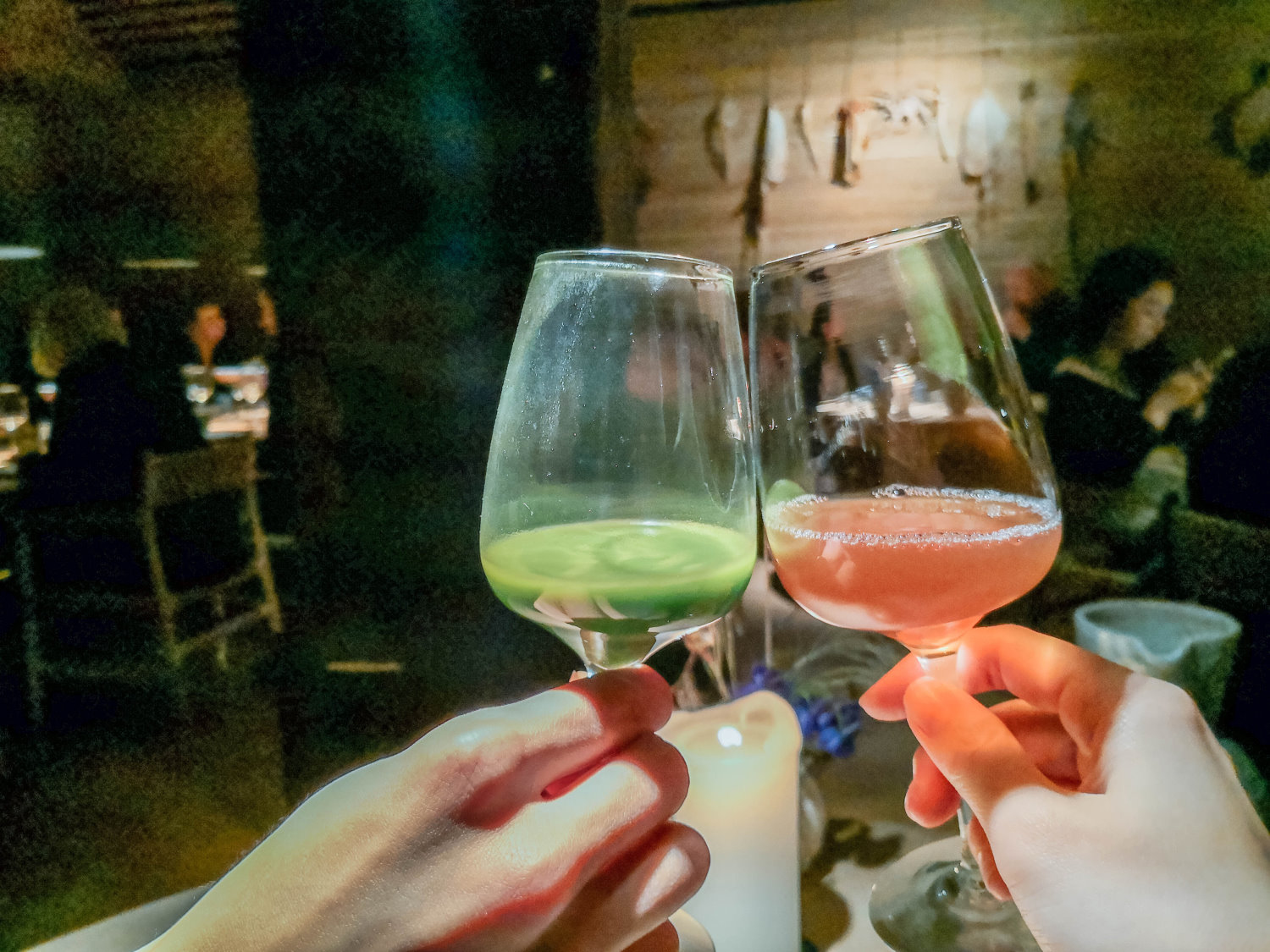真的是妙不可言的組合!在被告知之前,真的完全喝不出這是什麼飲料,萬萬沒想到有抹茶色澤的飲品竟然是浮游生物,而橘色這杯則加了 noma 醃製多年的燻章魚汁!