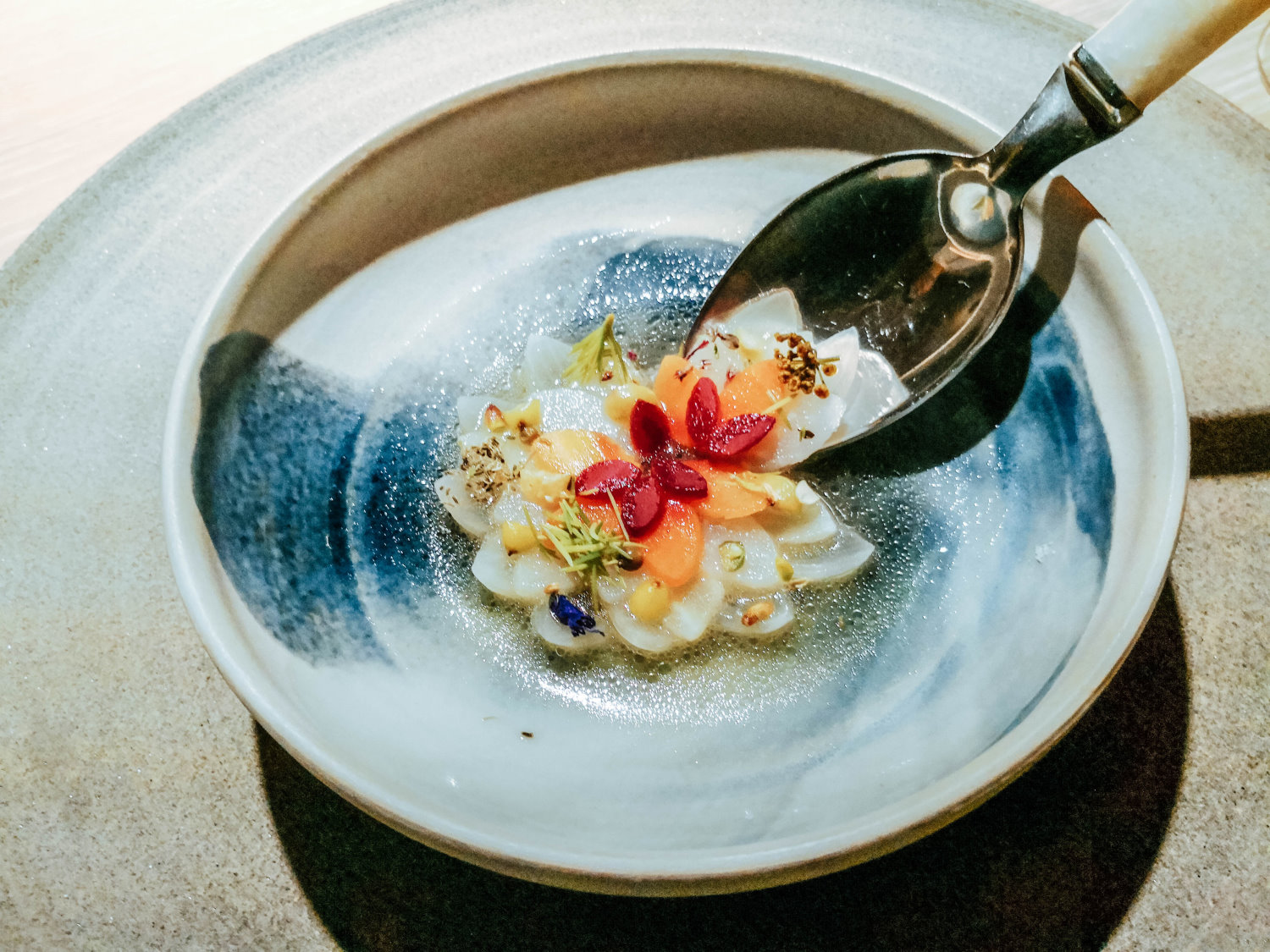 帶著禪意、有日式料理美感的料理,將醃製蔬果加上來自北極的香料點綴,口感偏酸、有花香,在吃完一輪大菜後,帶來滿腹清新。