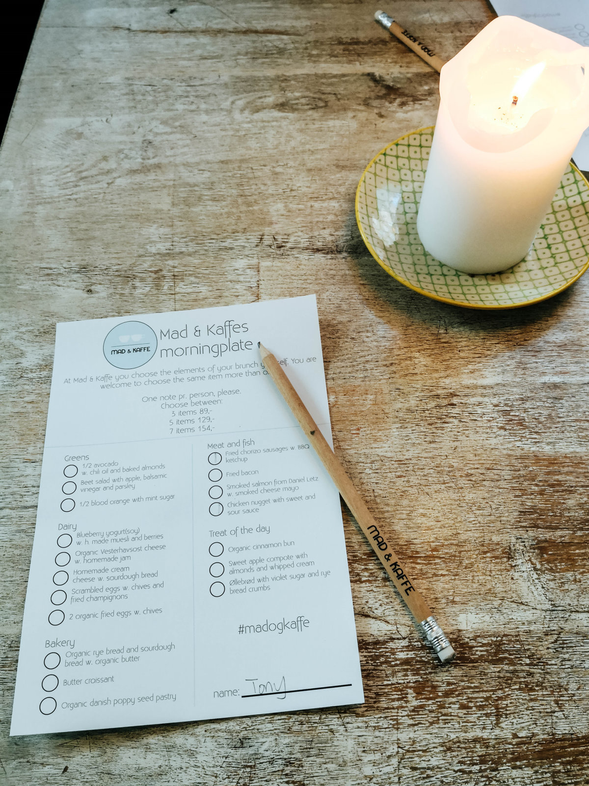 Mad & Kaffe 從 2015 年開張以來就是哥本哈根在地人早午餐名單上的人氣選擇,在網路上名氣響亮,我們也是慕名而來呢!抵達時很可能必須像我們一樣和其他期待用餐的丹麥人們一起在戶外座位區候位,但可以先領取個人餐單點餐,而 Mad & Kaffe 就是以能自己搭配各種早午餐組合而備受歡迎,餐單上寫明了挑選三、五、七項餐點的套餐價格,可以依照喜好和心情挑選。