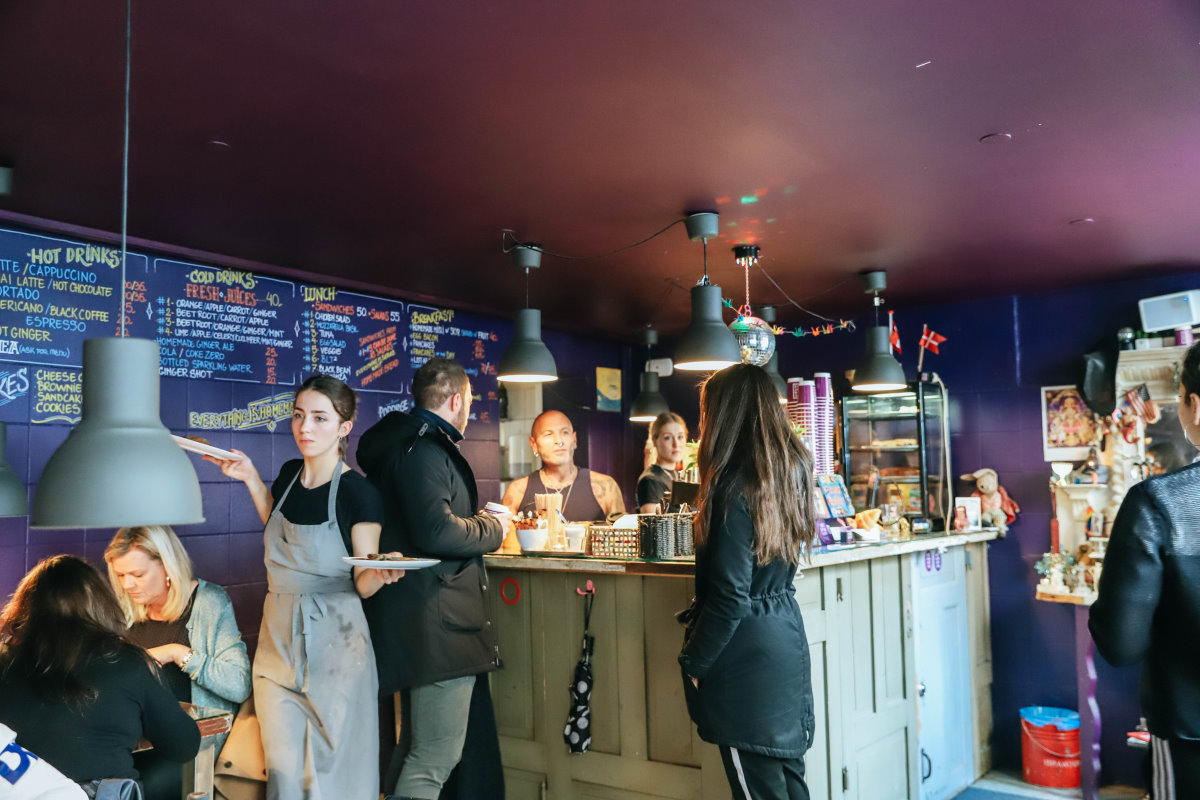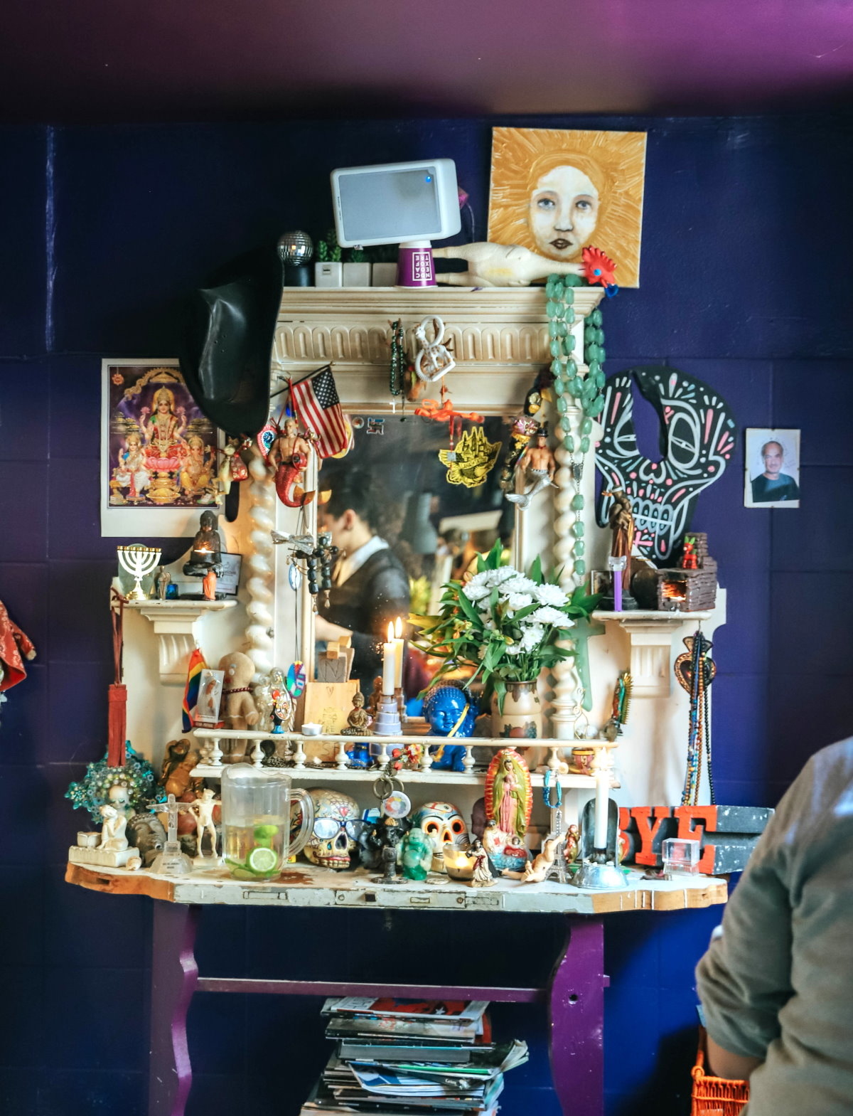 走進Next Door Café,滿屋子的紫色牆面和鏡子彷彿帶著魔力,甚至還有點上蠟燭、擺滿人像、公仔和彩繪骷髏收藏品的鏡台,總覺得這裡是個有神秘塔羅牌和占卜密室的小店(但是沒有!)。這間陳設和色調帶著怪奇系風格的咖啡館,實際上很有人情味、散發著快樂氛圍,老闆看似凶狠,頂著性格光頭和渾身刺青,人卻既 Nice 又熱心,就連店員都讓人覺得對工作充滿了熱情、熱愛著這裡。