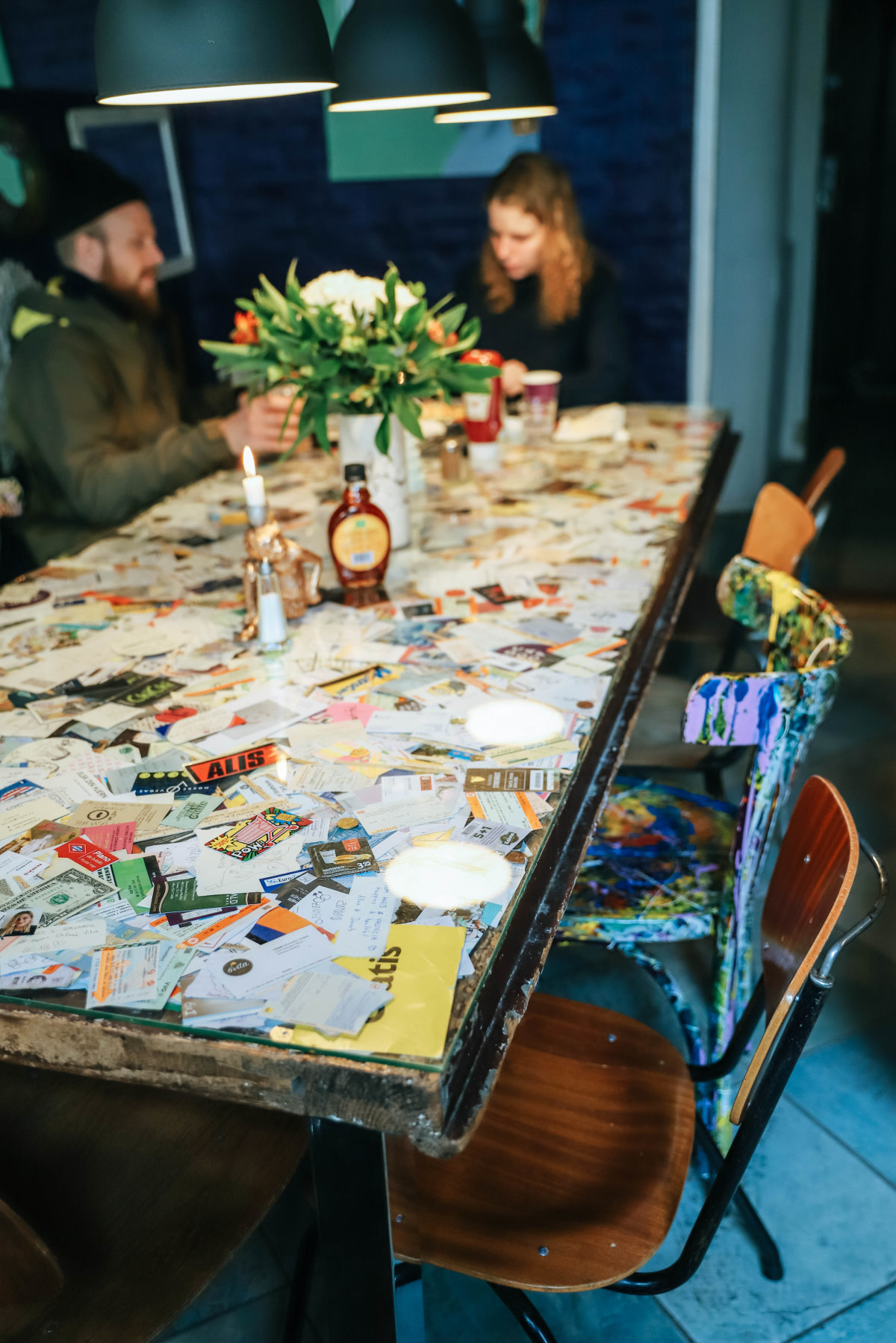 除了引人注目的紫色裝潢和好吃的 Homemade Food,用餐的時候也一定會注意到餐桌玻璃下收藏了來自世界各地的遊客留下的拍立得、錢幣和鈔票、明信片、名片……等各式各樣的旅遊紀念,這讓以旅行為品牌精神的我們覺得很酷之外,也十分敬佩,希望有一天WEAVISM 也能像 Next Door Café,成為旅人們旅行中快樂回憶的一部分,並且透過旅行和來自四面八方的人們成為朋友!