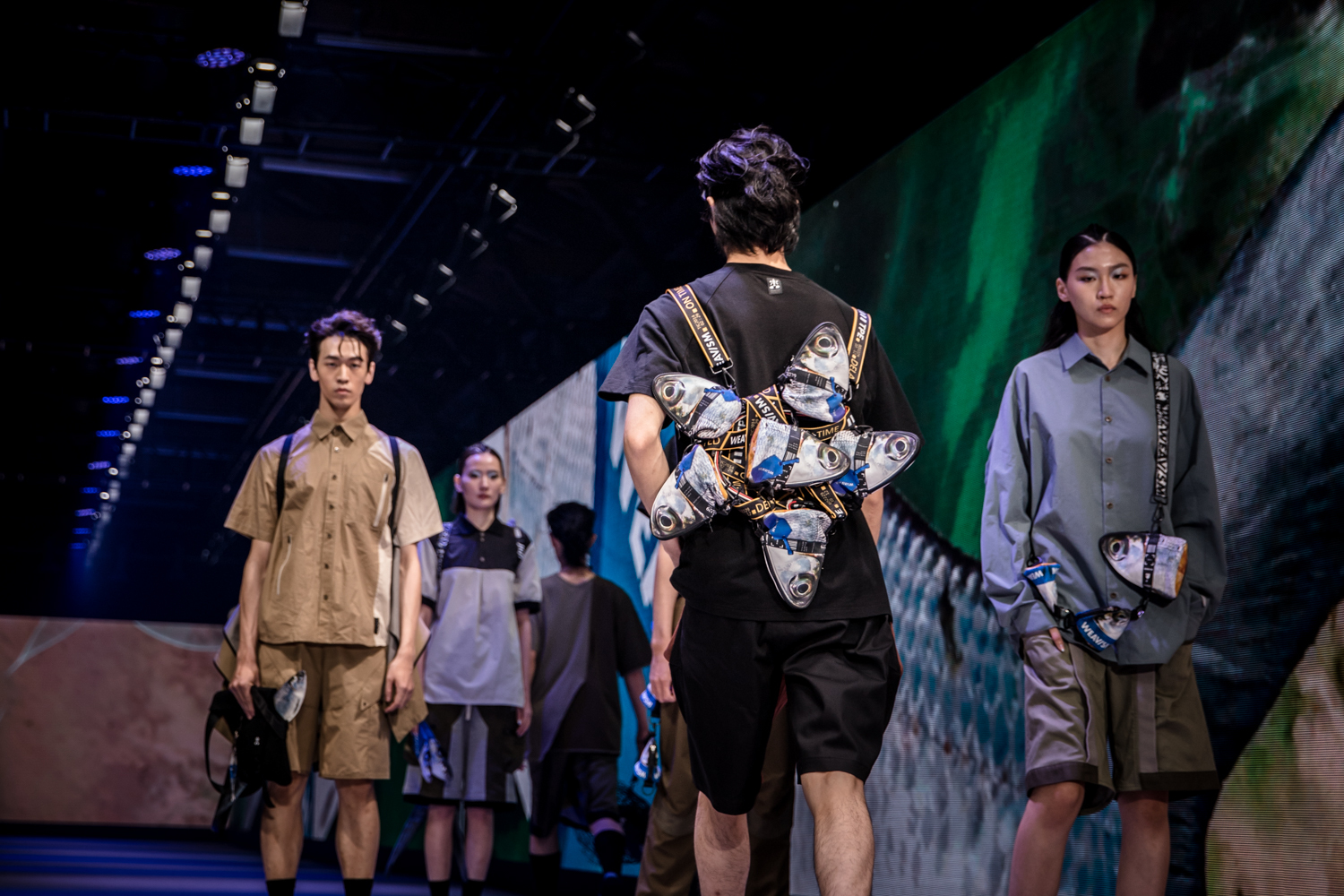 首先開場的永續族 (Eco) 以招牌虱目魚的永續系列做為出發,以簡約的單品搭配虱目魚與機能扣具結合所翻玩出的另類時尚配件。服裝以簡潔,俐落的版型搭配異材質的拼接來呈現WEAVISM織本主義一貫拿手的設計風格。