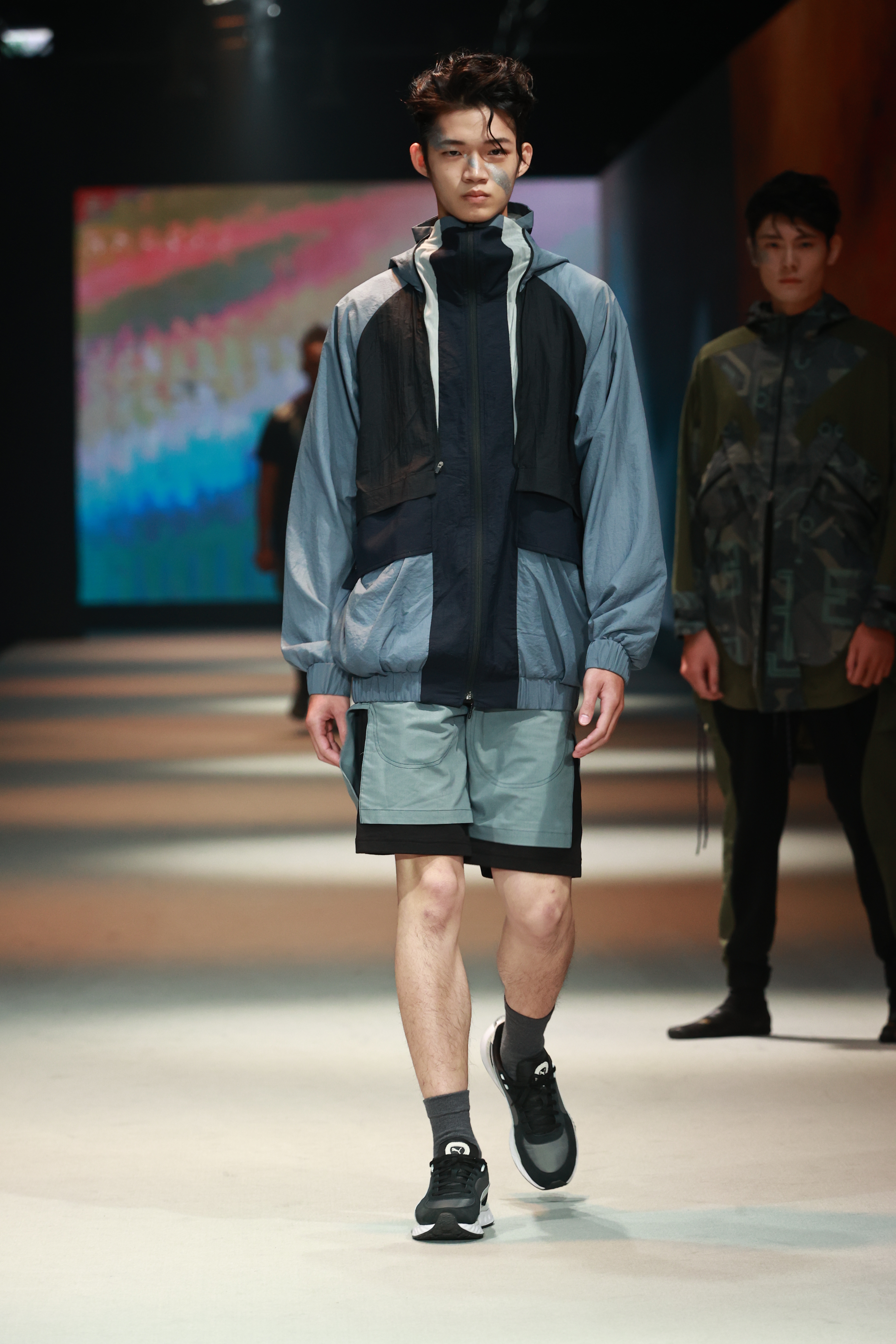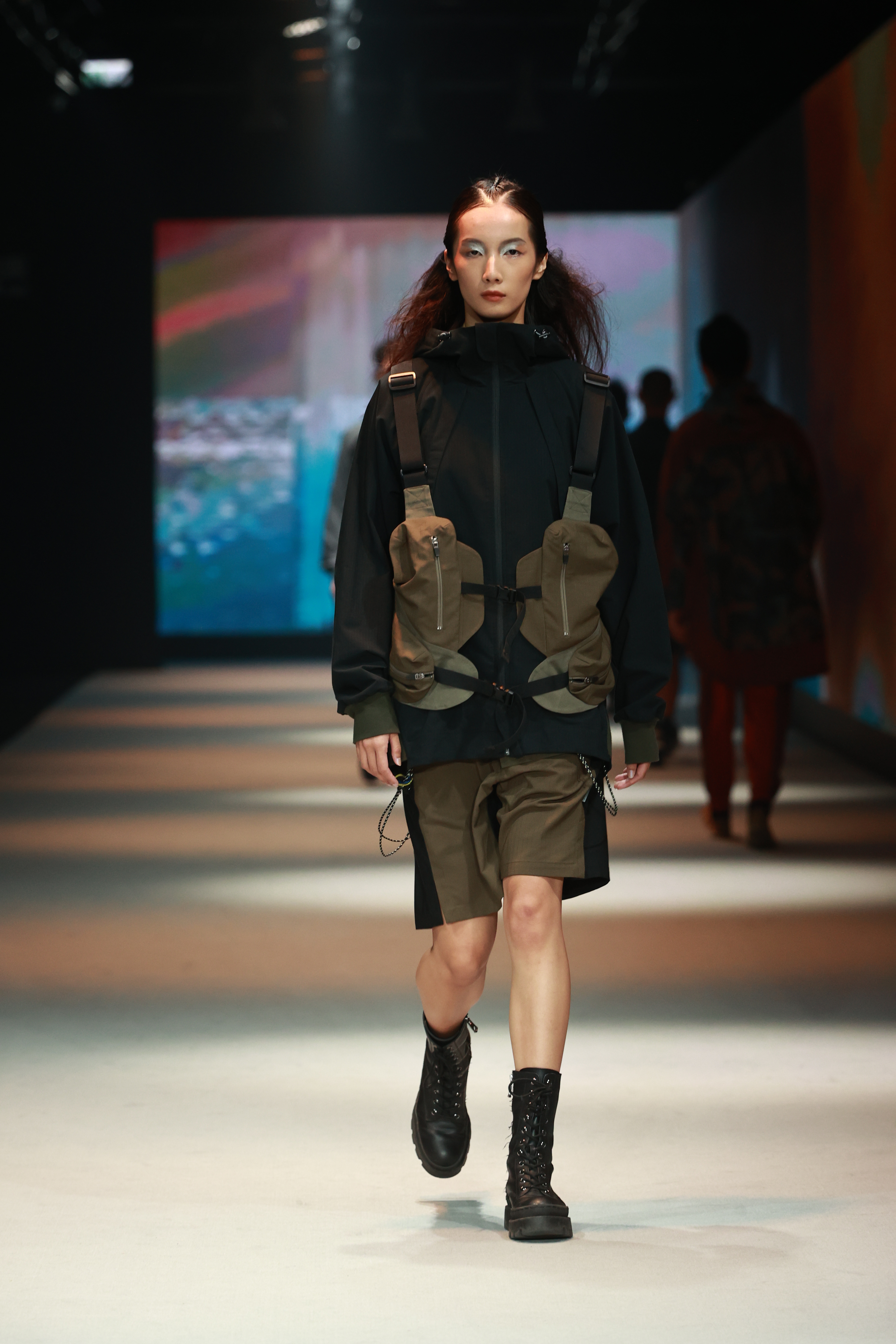 秀上模特特別搭配軍靴和異形鞋及PUMA Wild Rider鞋款,象徵於末日世界翻湧向前推進,迎接生存挑戰。也特別感謝凱渥名模的專業演繹共襄盛舉。