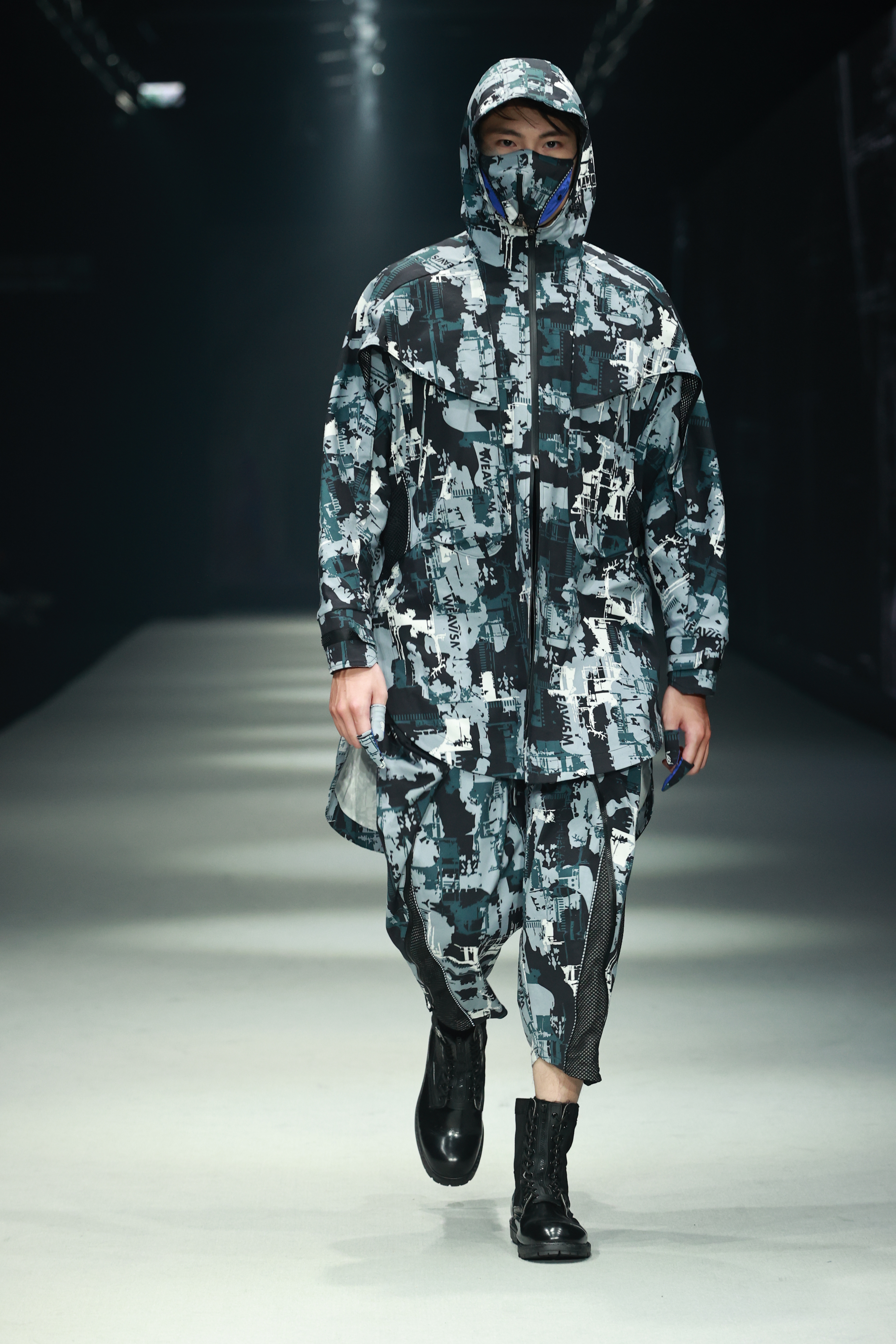 壓軸則由噬者生存族(Phago Clan) 登場:這族專注於吞噬同類及異類,透過「進化」來維持平衡。版型上以實驗性的線條以及暗崁的機能性細節,破壞原先對服裝版型的既定認知。款式上增添了許多異材質的剪接,暗喻生物在進化時身體表面正在蛻變的狀態。許多上衣及褲子均可透過拉鍊或抽繩的方式展開,讓服裝實際也持續進化。