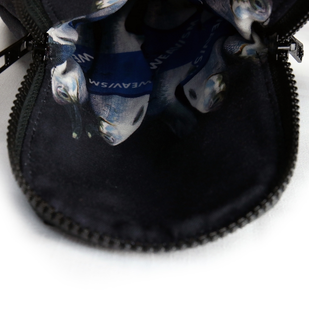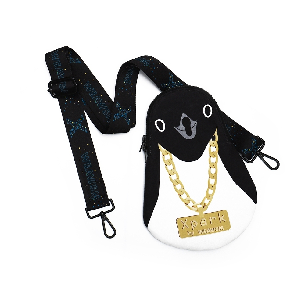 企鵝是水族館最象徵性的代表之一,設計師以大小朋友的幻想取代寫實風,融入街頭元素的金項鍊,巧妙地將親子童趣與潮流機能結合在一起。另外因為魚是企鵝最愛的食物,也同時將品牌代表虱目魚隱藏在包包的內裏增添驚喜。背帶上將Xpark與WEAVISM的logo作點、線、面的循環延伸,象徵無限的可能性。