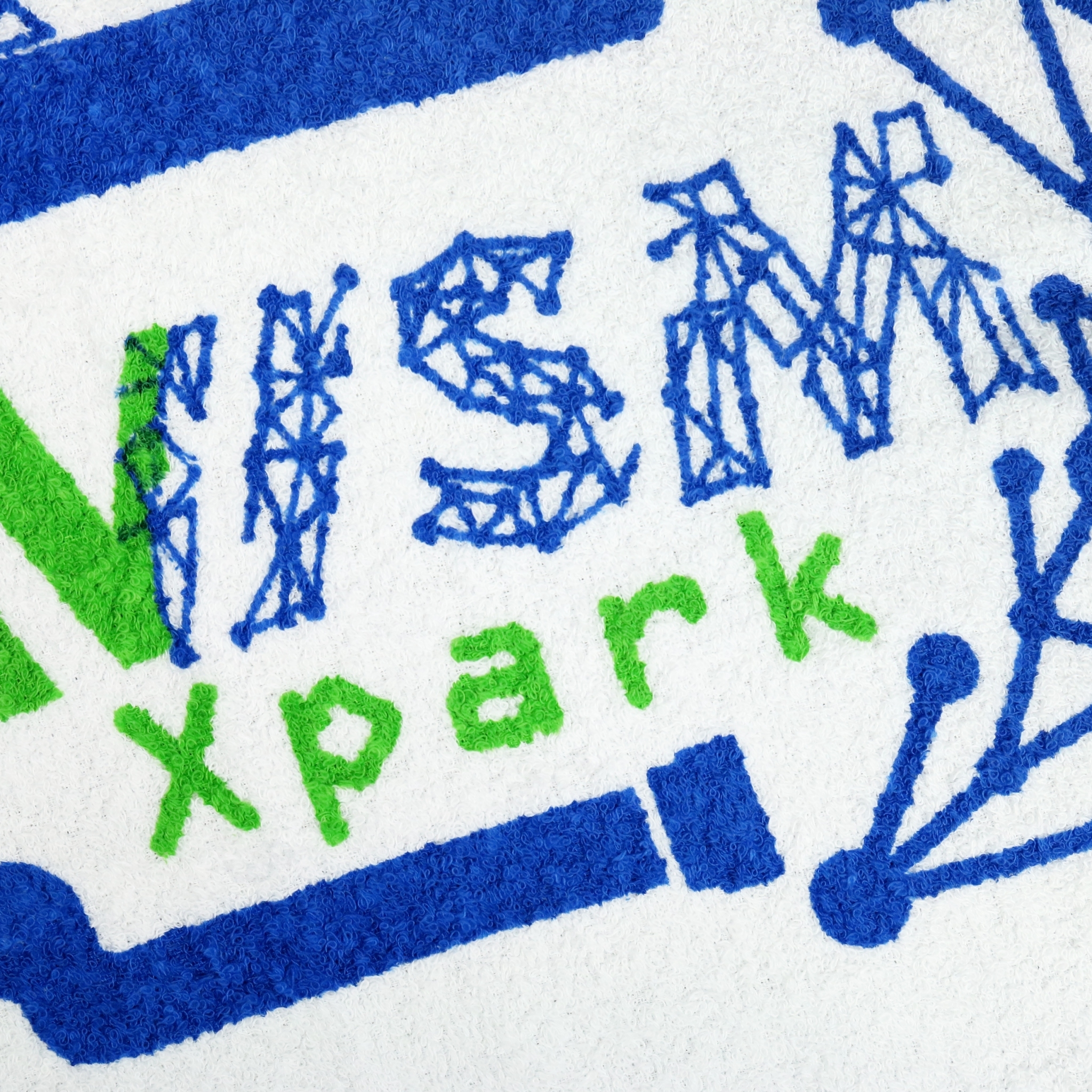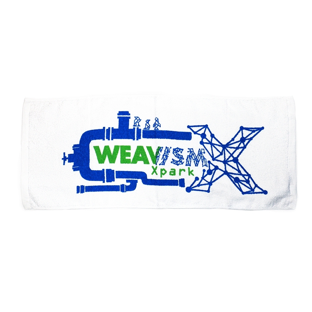 水族館內亮點之一的咖啡廳內企鵝連通道,企鵝為了覓食,回家就會經過企鵝隧道。為了呼應這個特色場景,這款毛巾採用噴墨印花的方式,水管搭配線性圖像設計的企鵝,重現悠游其中的療癒感,用強烈的跳色差異將WEAVISM和Xpark的logo作漸進式變化融合在一起,充滿不少巧思在其中。