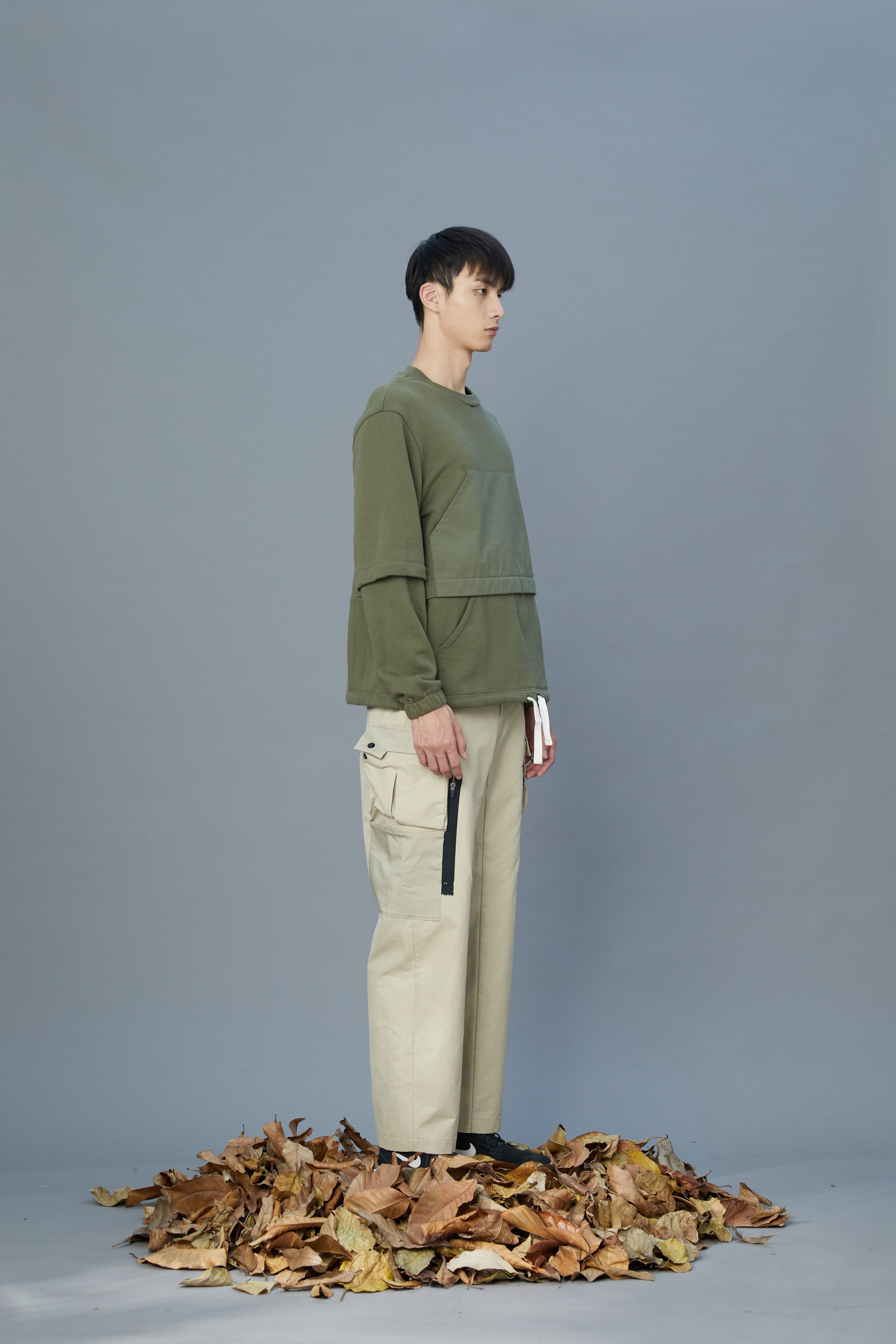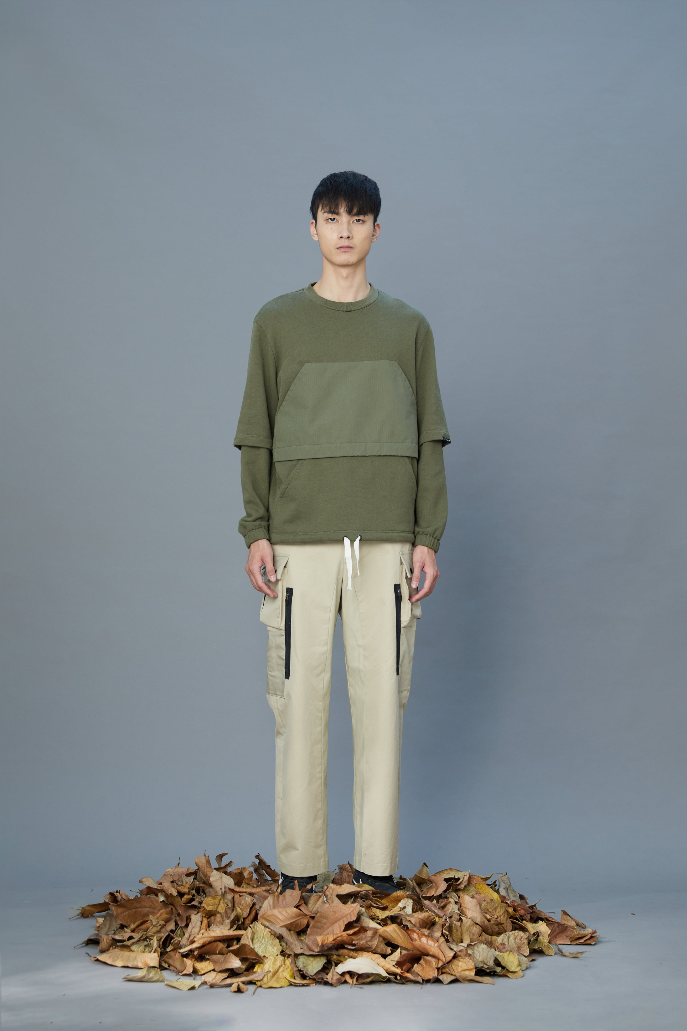 雙層視覺口袋上衣 - 墨綠