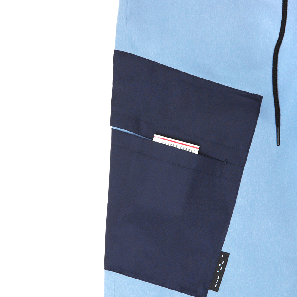 四面彈大貼袋抽繩長褲 - 亮藍