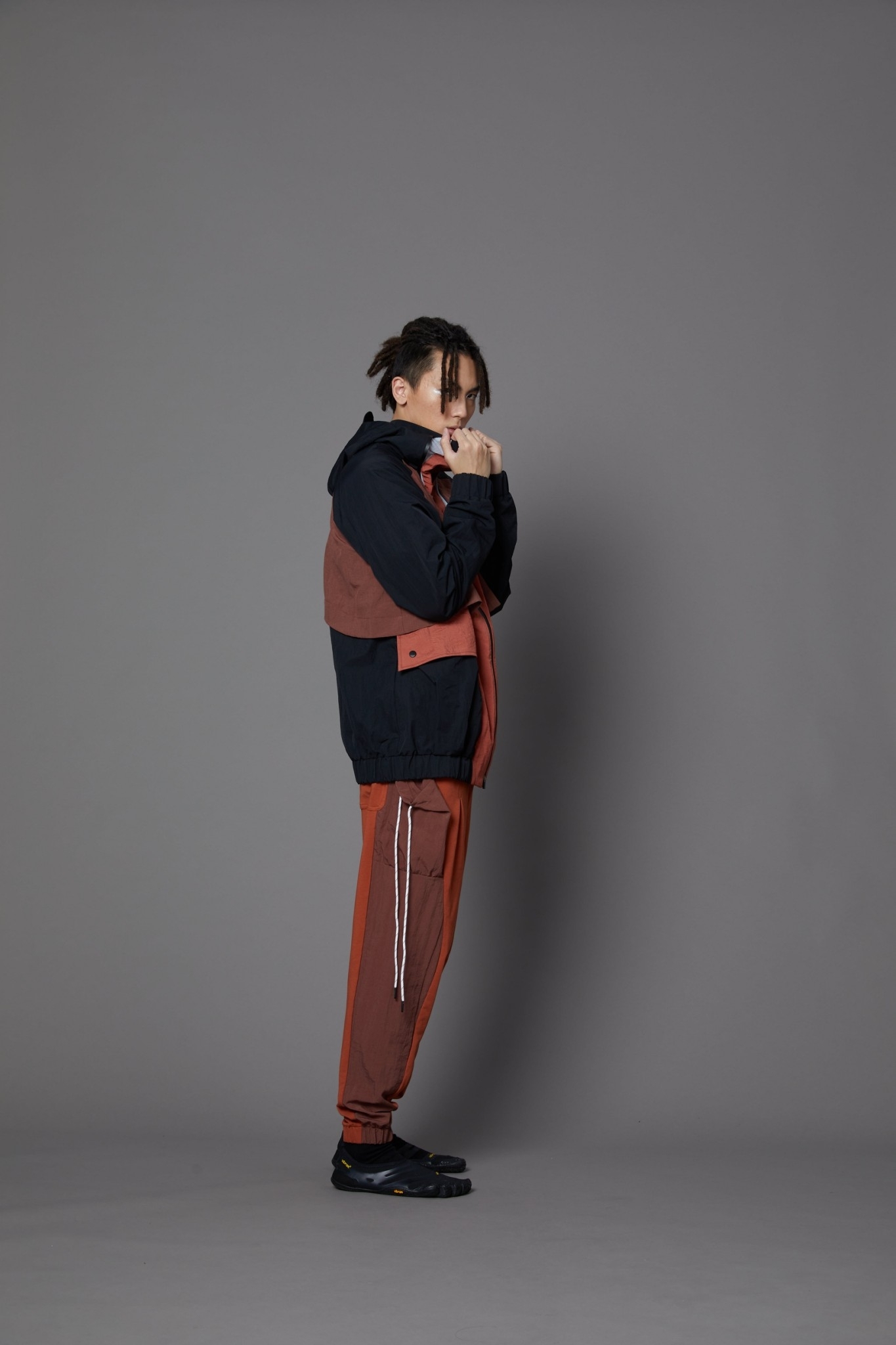 外套正面採用多層堆疊設計製造立體份量感.內裡使用大面積透氣網實穿不悶熱