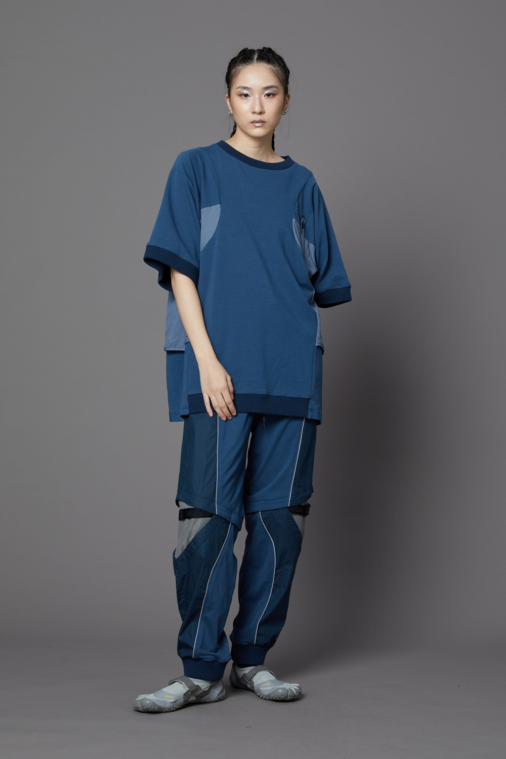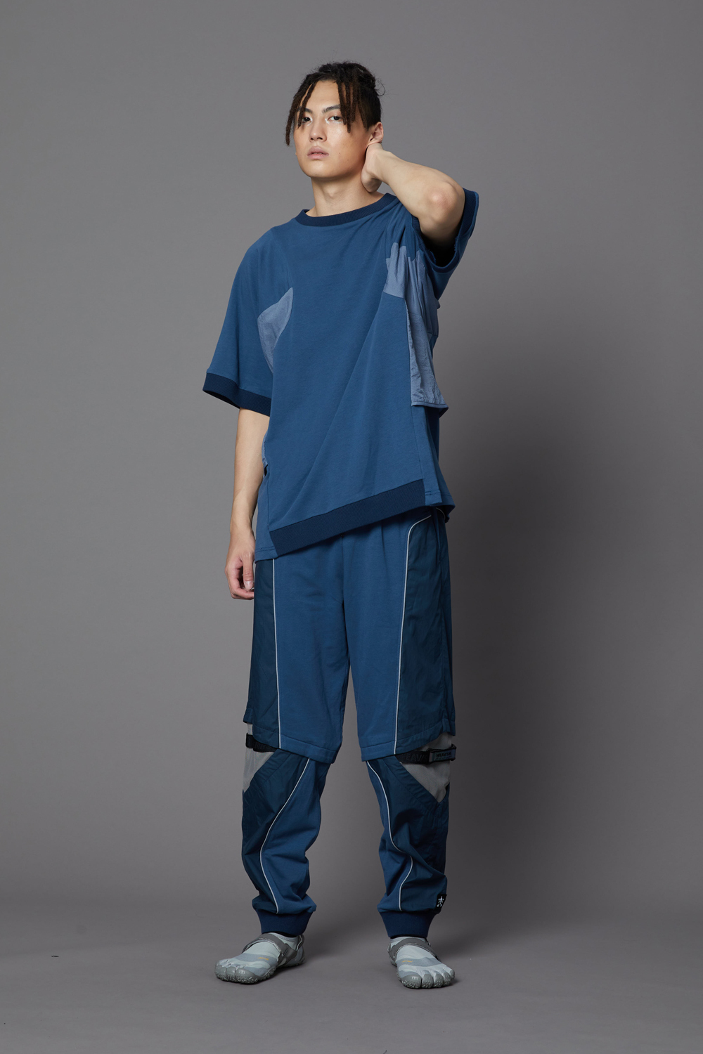 膝開口異形束口長褲-藍