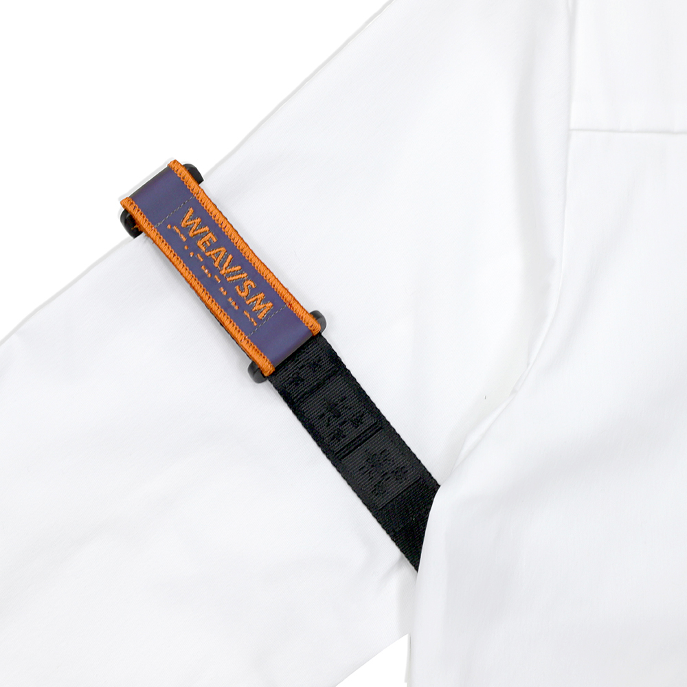 立體刺繡搭配由極細玻璃珠建構的反光基底,識別勳章還可拆卸再扣在其他單品上。