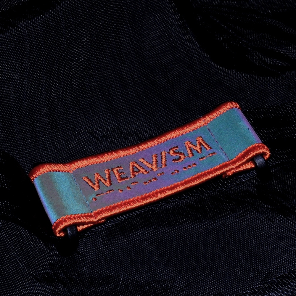 立體刺繡搭配由極細玻璃珠建構的反光基底,識別勳章還可拆卸再扣在其他單品上。