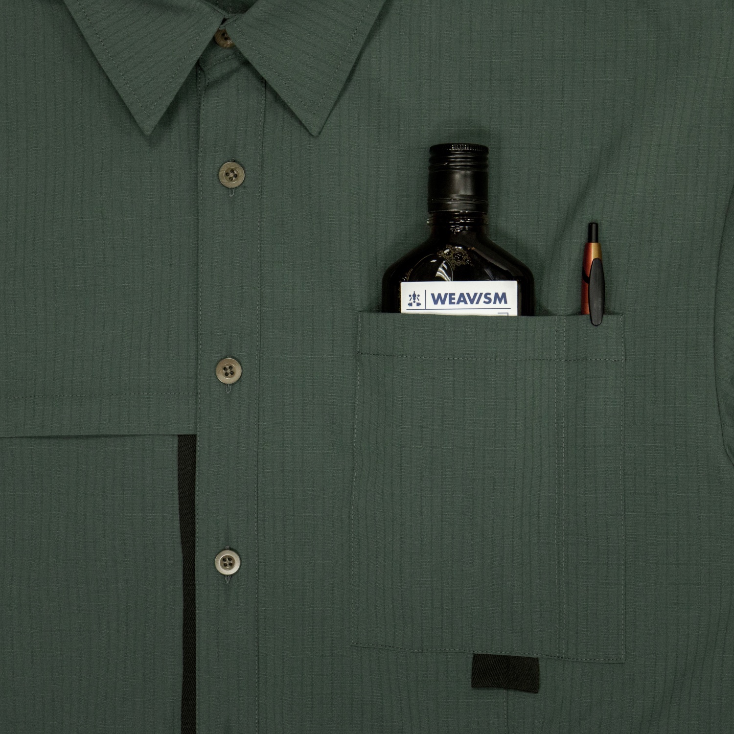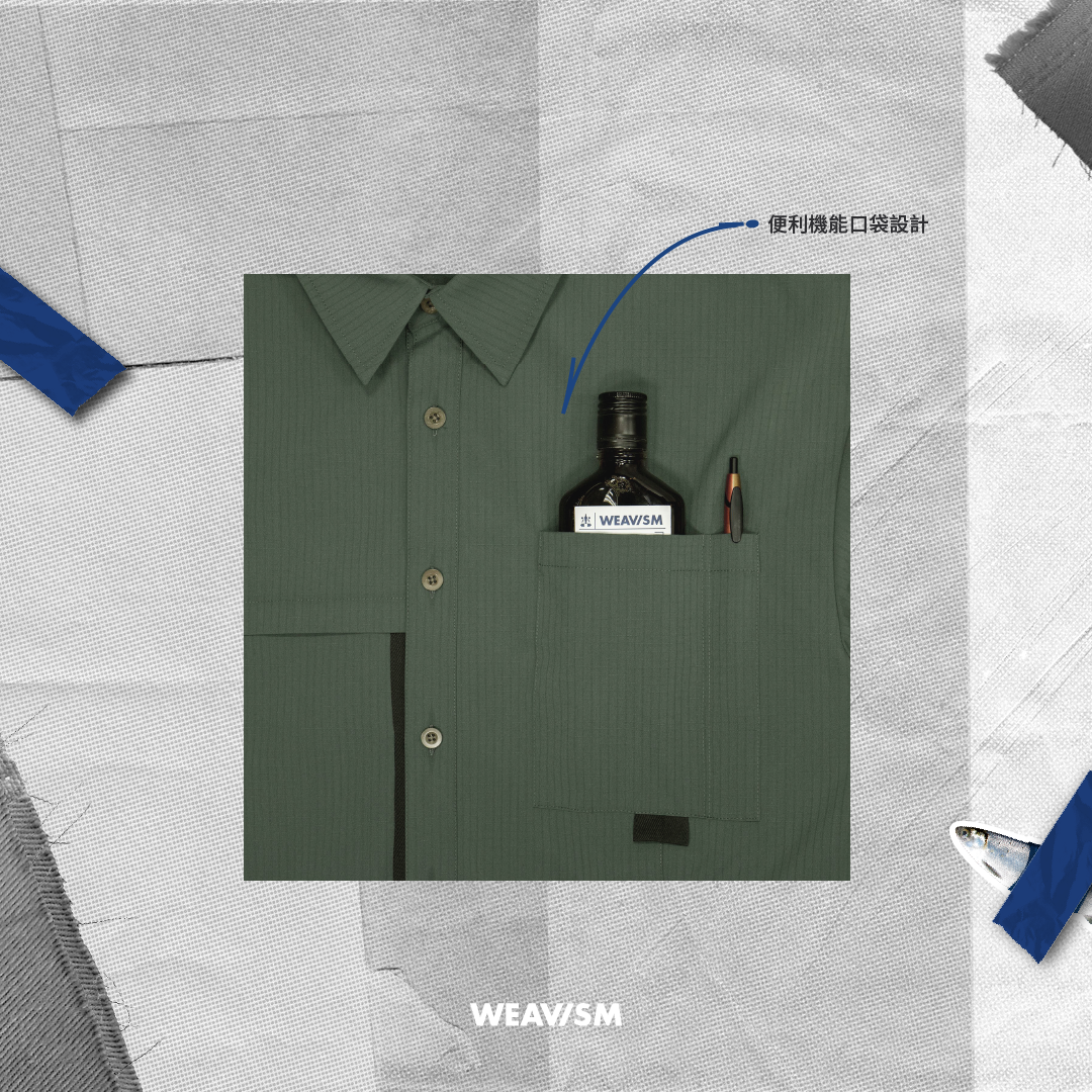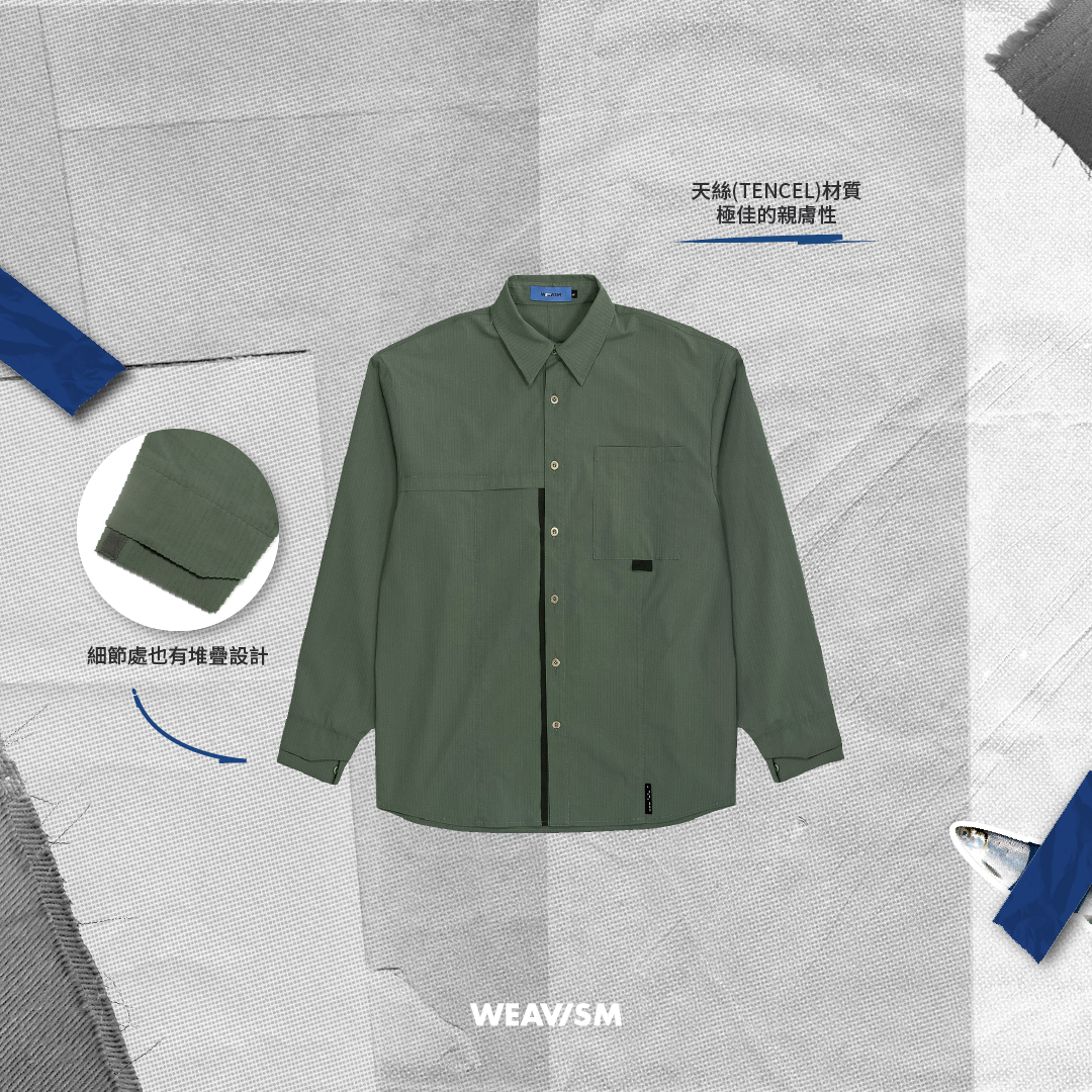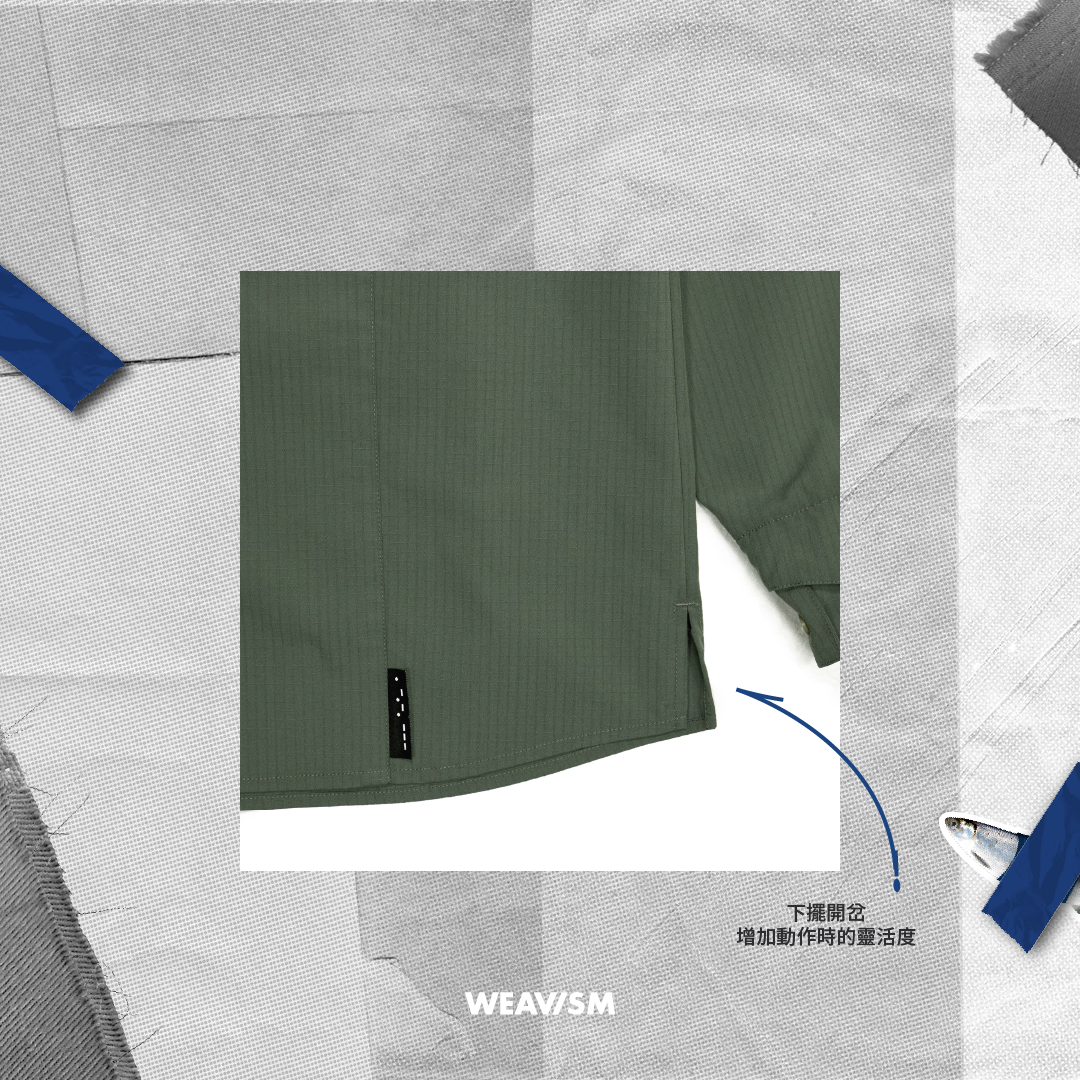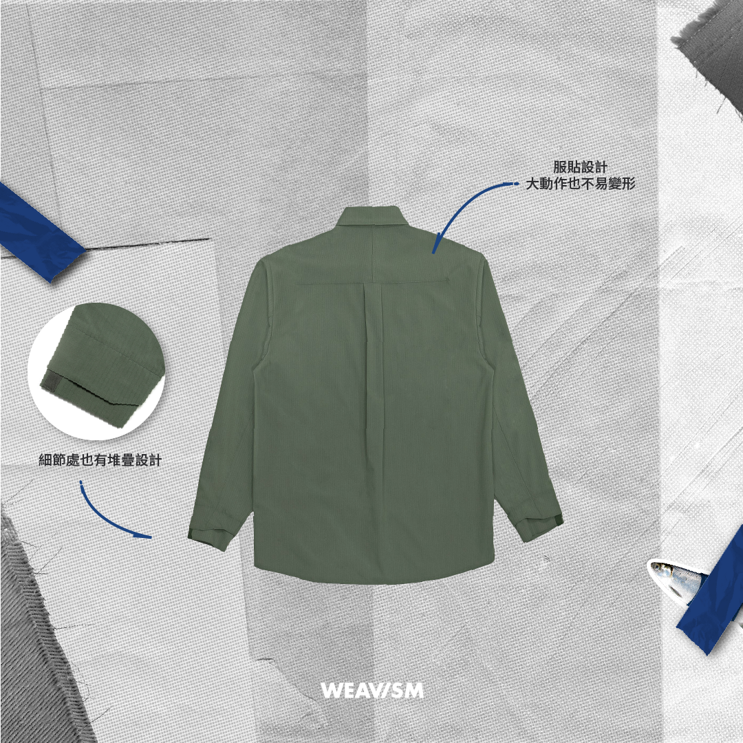 顏色上為隱藏於山野中昆蟲的配色,版型上為休閒襯衫,適於戶外及城市間的機能穿搭!