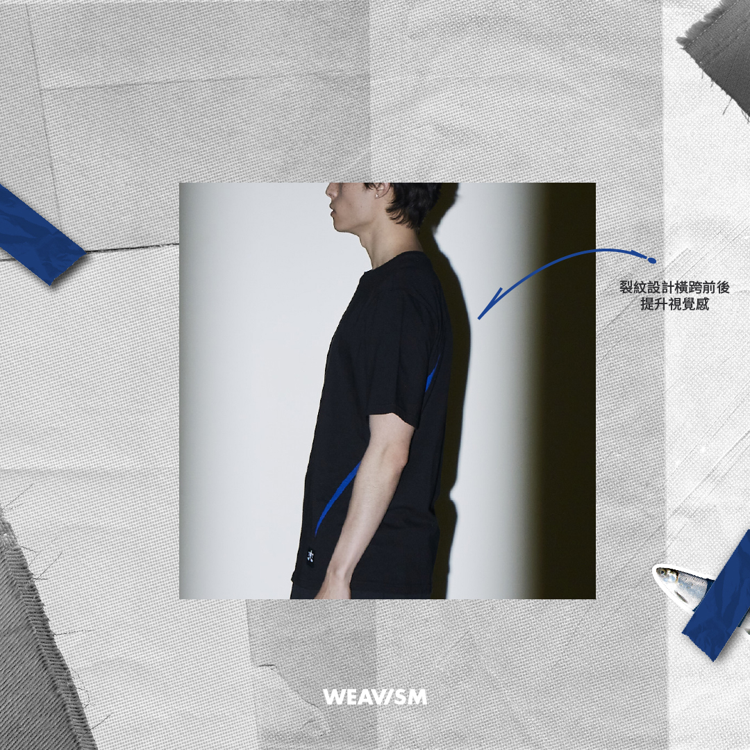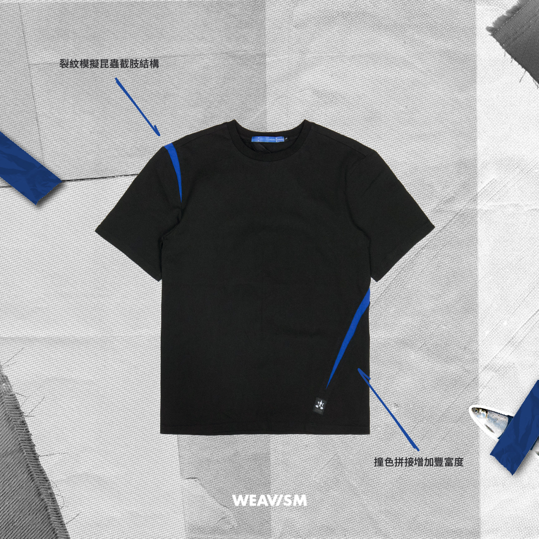 這款裂紋撞色寬鬆Tee衣身大面積素色中看著像裂紋的跳色拼接,同時也是昆蟲的節肢結構。