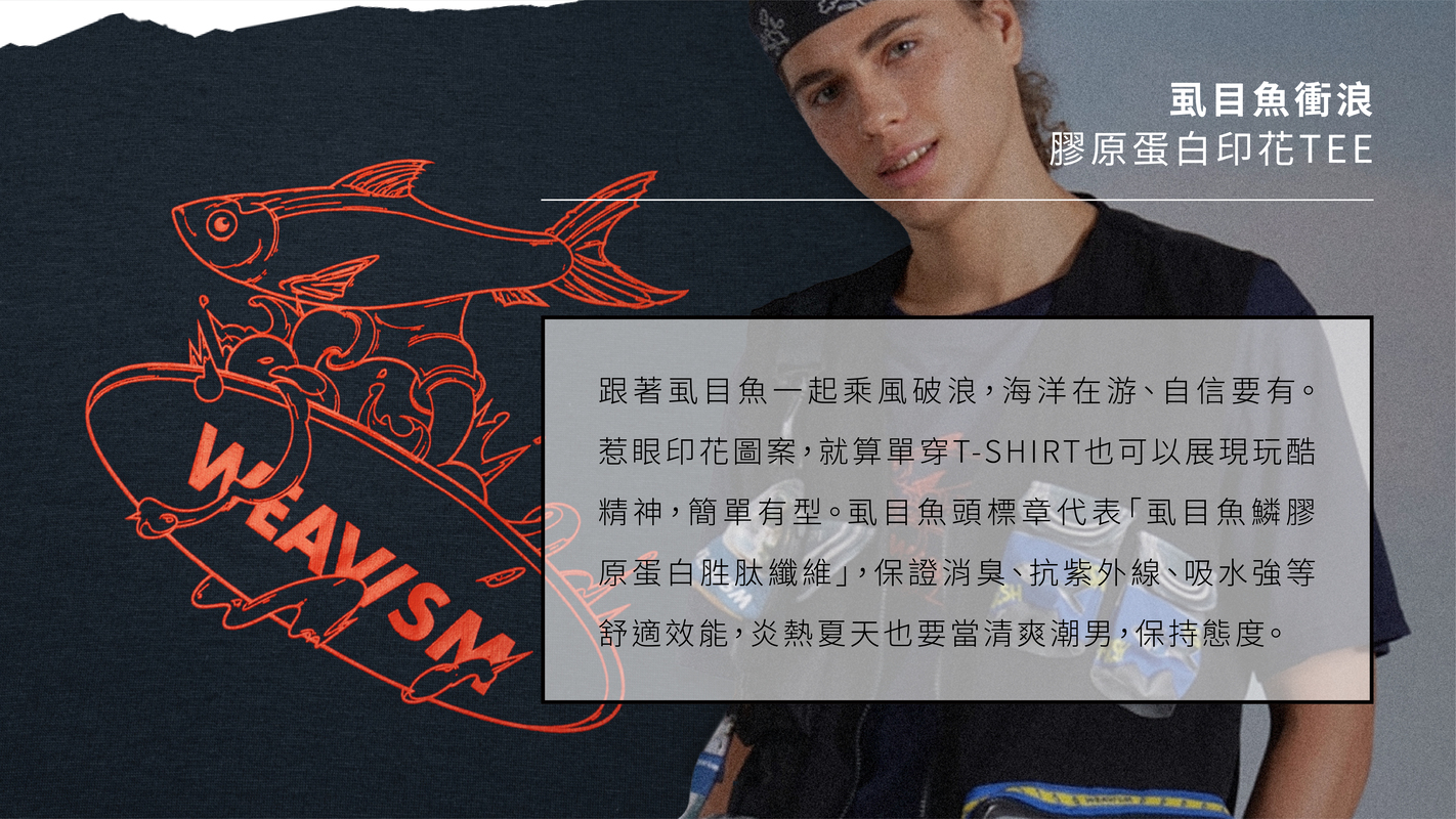 虱目魚衝浪膠原蛋白印花Tee-石岩灰