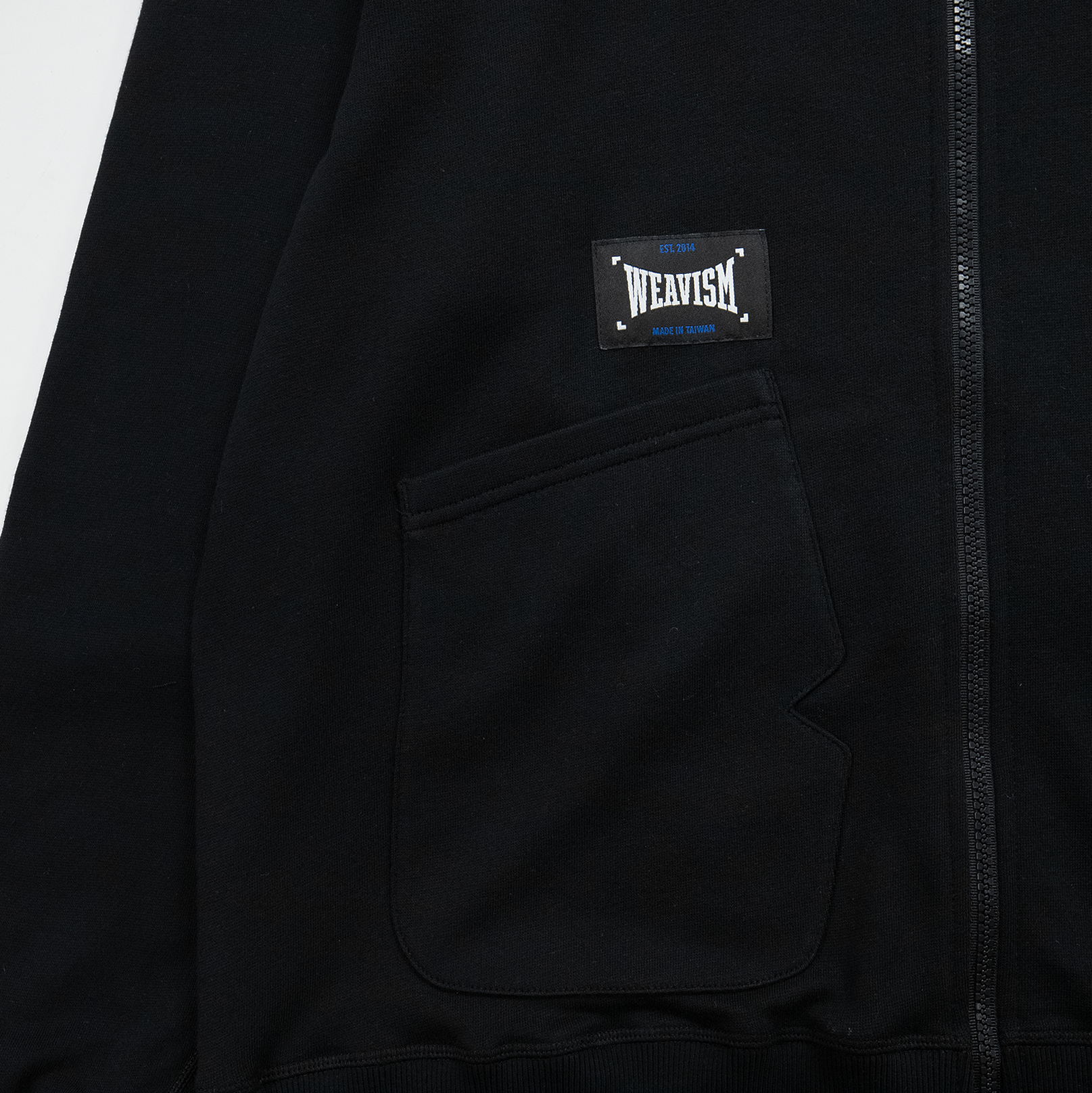 袖子可拆卸設計能從外套便背心。前方碎裂膠印搭配左右手的