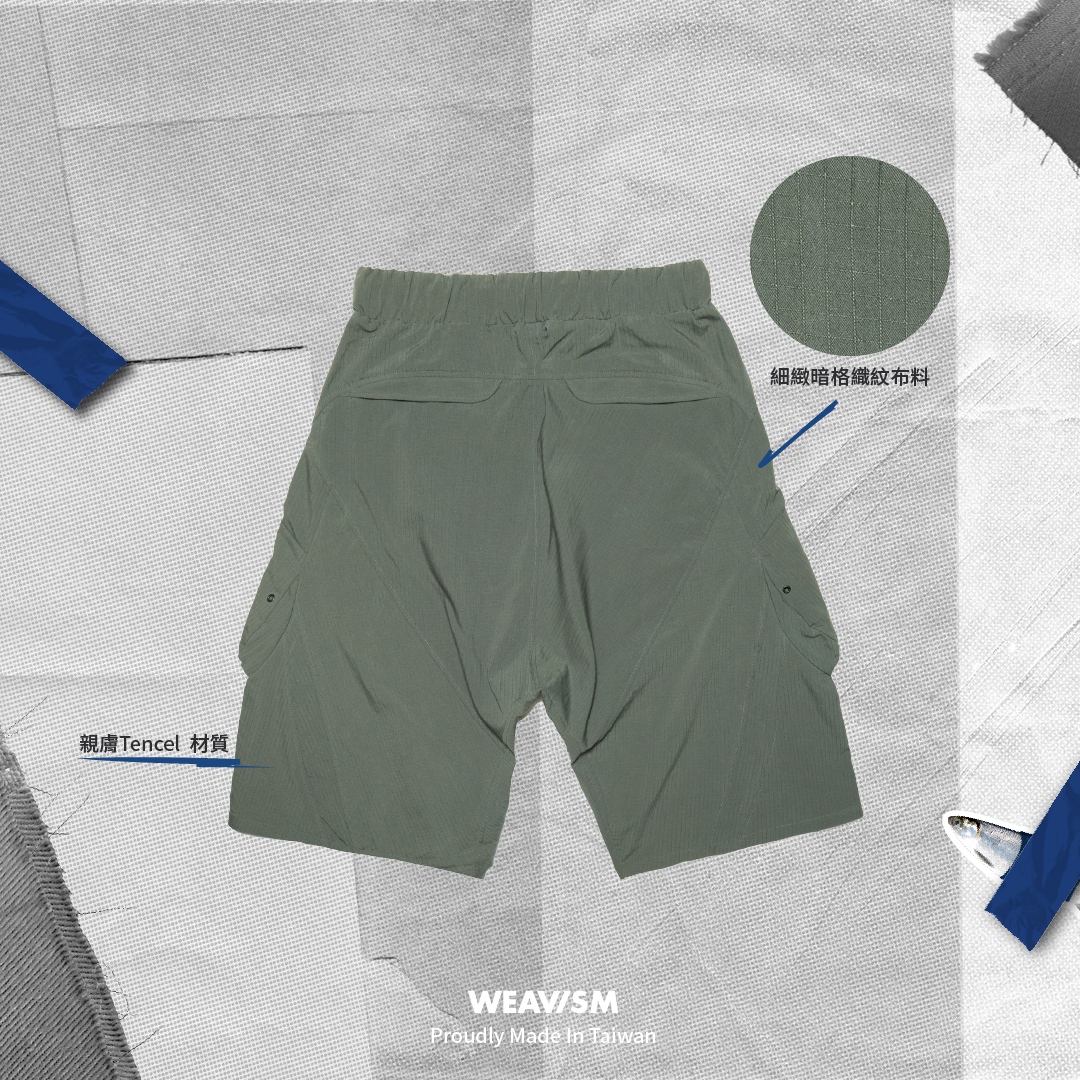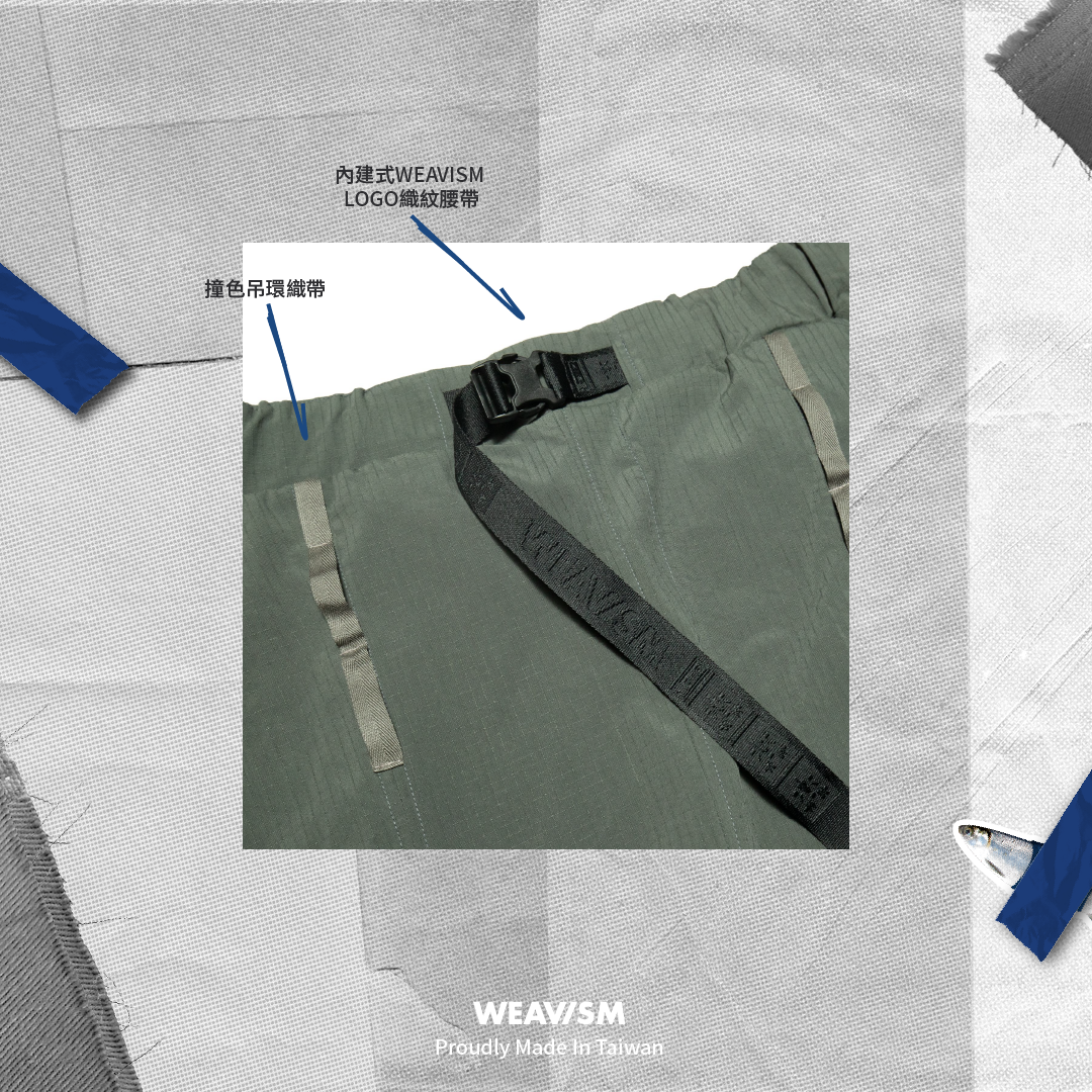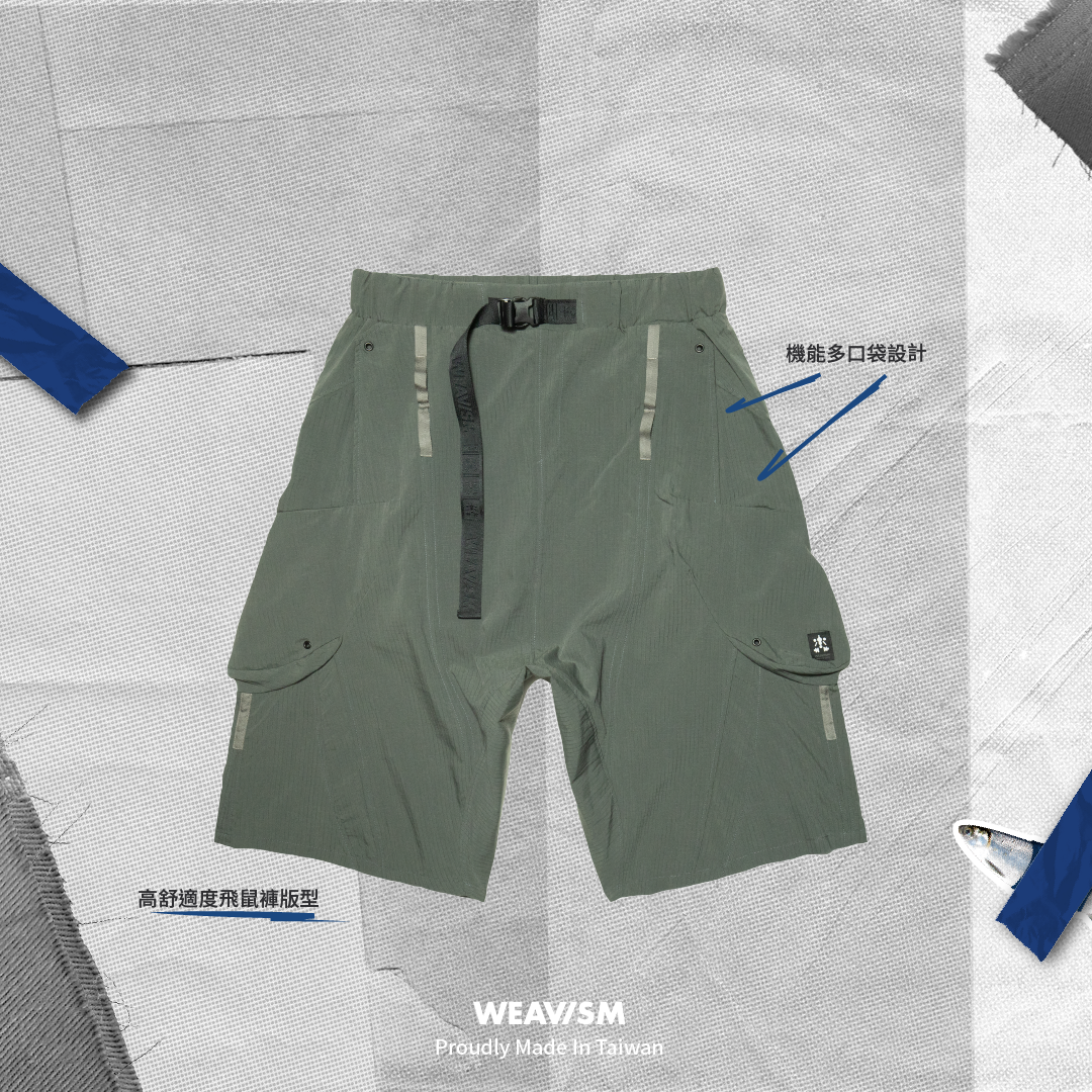 立體袋膝下飛鼠褲3D感的側口袋,做出圓弧形的蟲翅設計,將昆蟲的概念貼近實用功能。過膝長度搭上飛鼠褲設計,