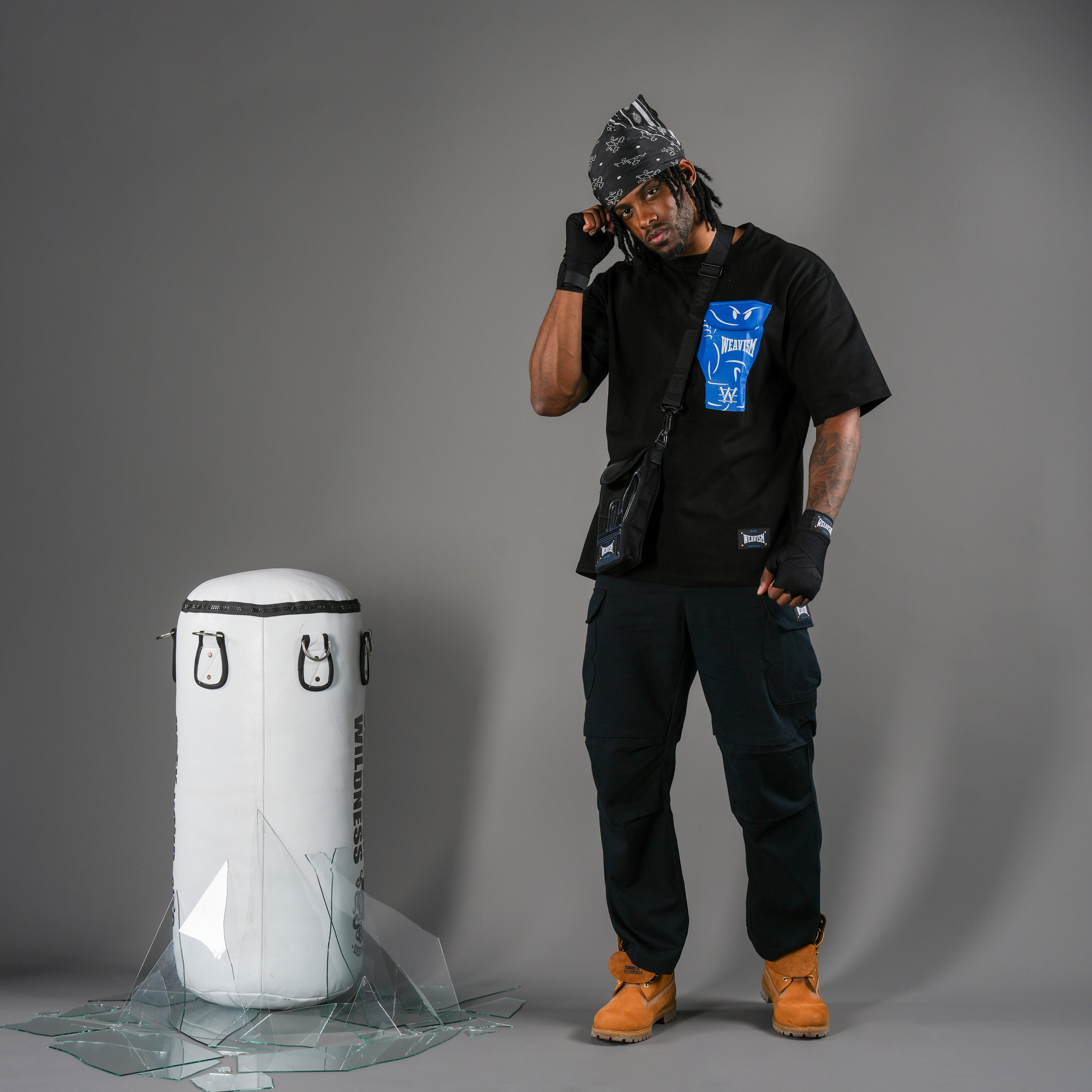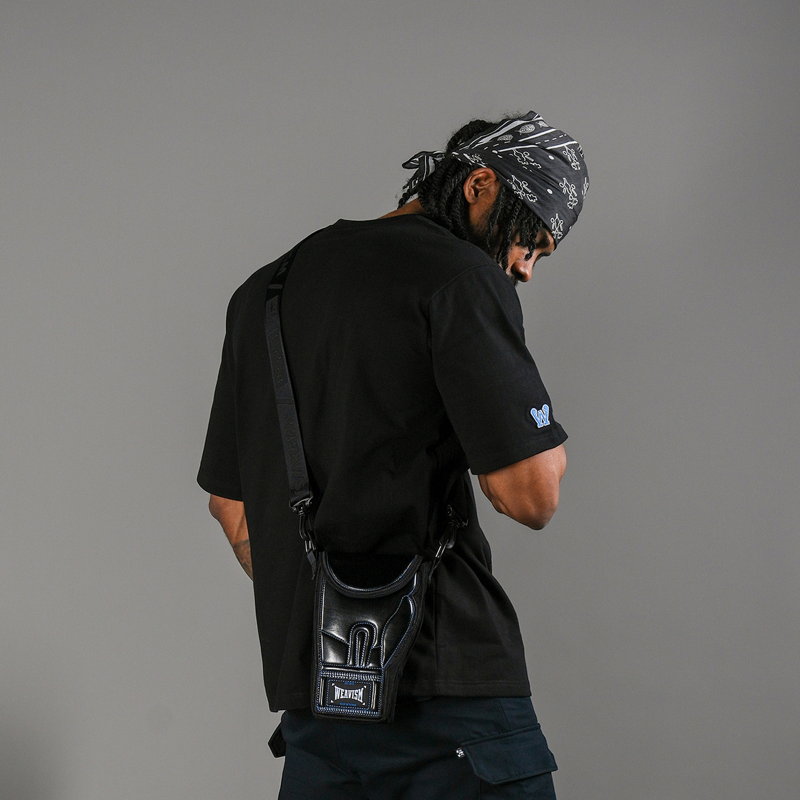 我們想做市面上最像拳擊手套的包,讓拳手能將這樣的友誼延伸至街頭。此款包經過了數十次的改良,雙面的立體造型設計以盡可能將拳套的特徵完整呈現,但同時兼具小包應有的實用性。收納空間可放入手機,鑰匙,等隨身物品。皮革部分則使用環保的擋風玻璃皮革WindXield Leather,耐刮,防水,與能抵擋氣溫變化,比真皮更實用。