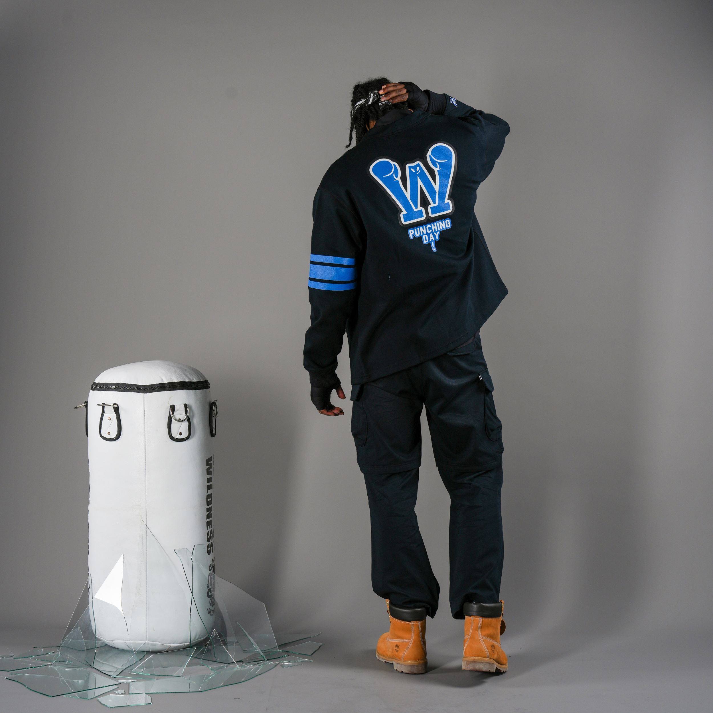 將我們Winning Face 發揮到極致的外套。布料使用重磅棉健康布,具有重磅的挺度也有針織布該有的彈性。以常見的大學開襟外套版型為基底,搭配三處不同詮釋風格的 Winning Face. 有簡約的繡章,有復古的毛巾繡,及暴力的碎裂印花,在乖乖牌的形象下有顆好勝的心。